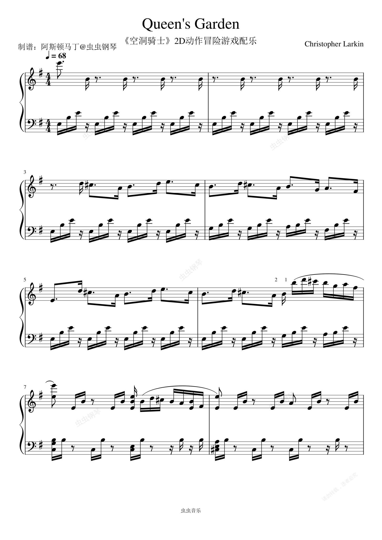 钢琴谱:Queen's Garden - 《空洞骑士》2D动作冒险游戏配乐
