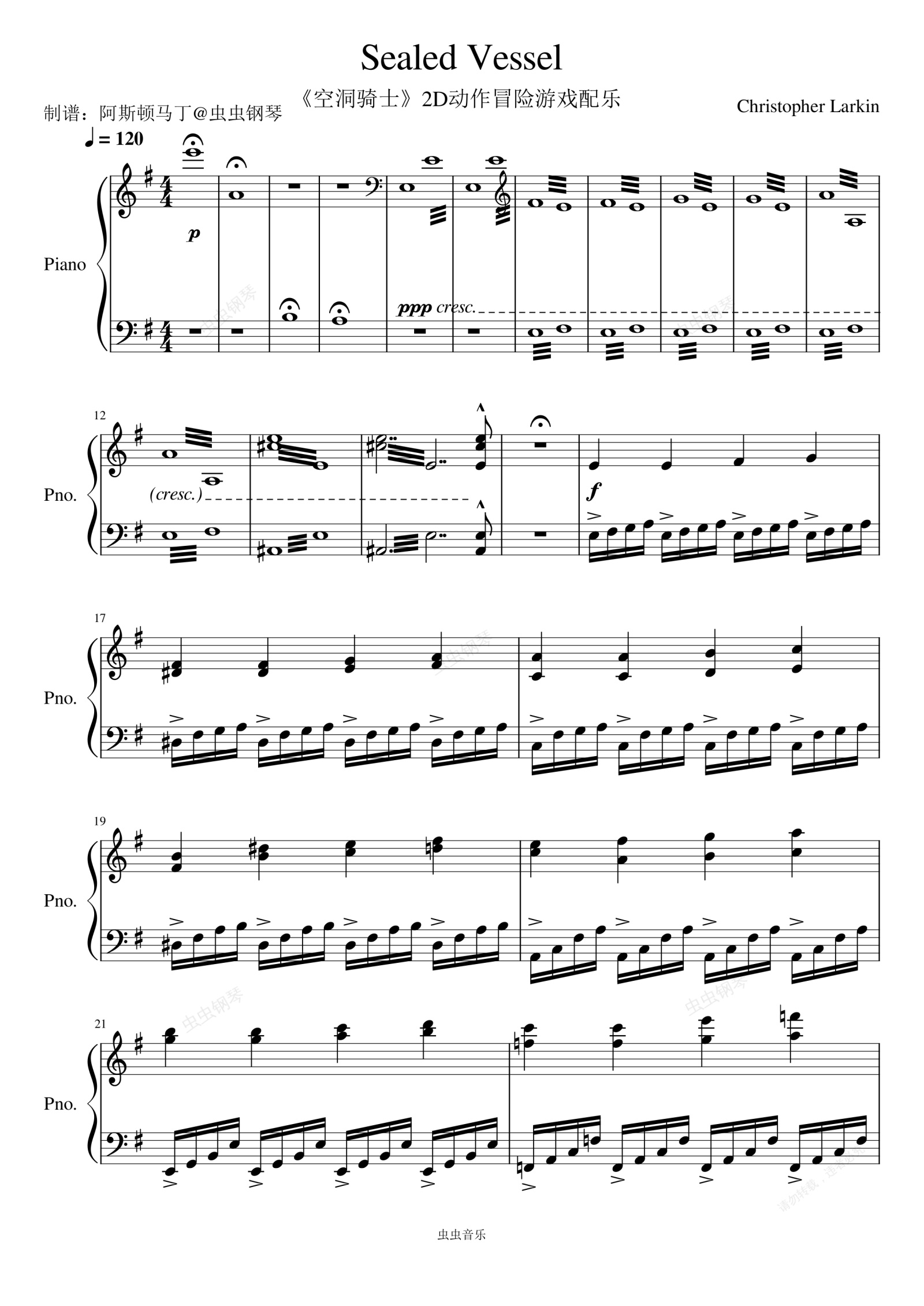 钢琴谱:Sealed Vessel - 《空洞骑士》2D动作冒险游戏配乐