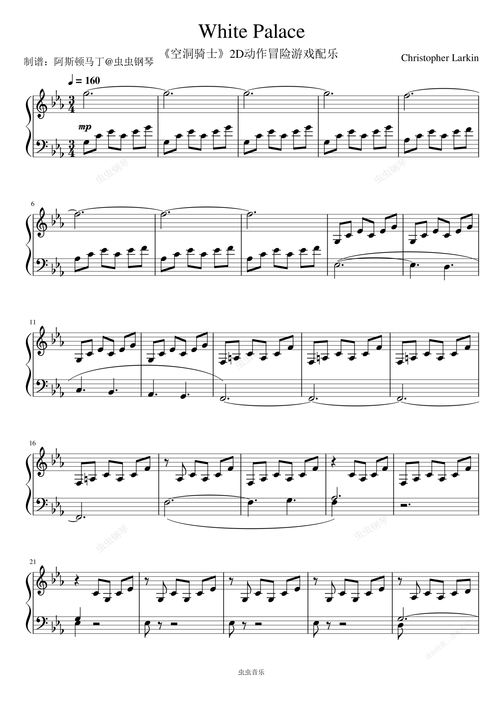 钢琴谱:White Palace - 《空洞骑士》2D动作冒险游戏配乐