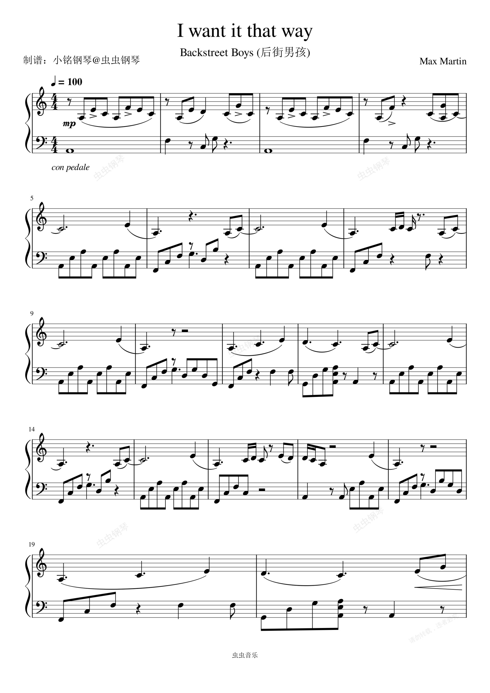 钢琴谱:I Want It That Way - Backstreet Boys (后街男孩)