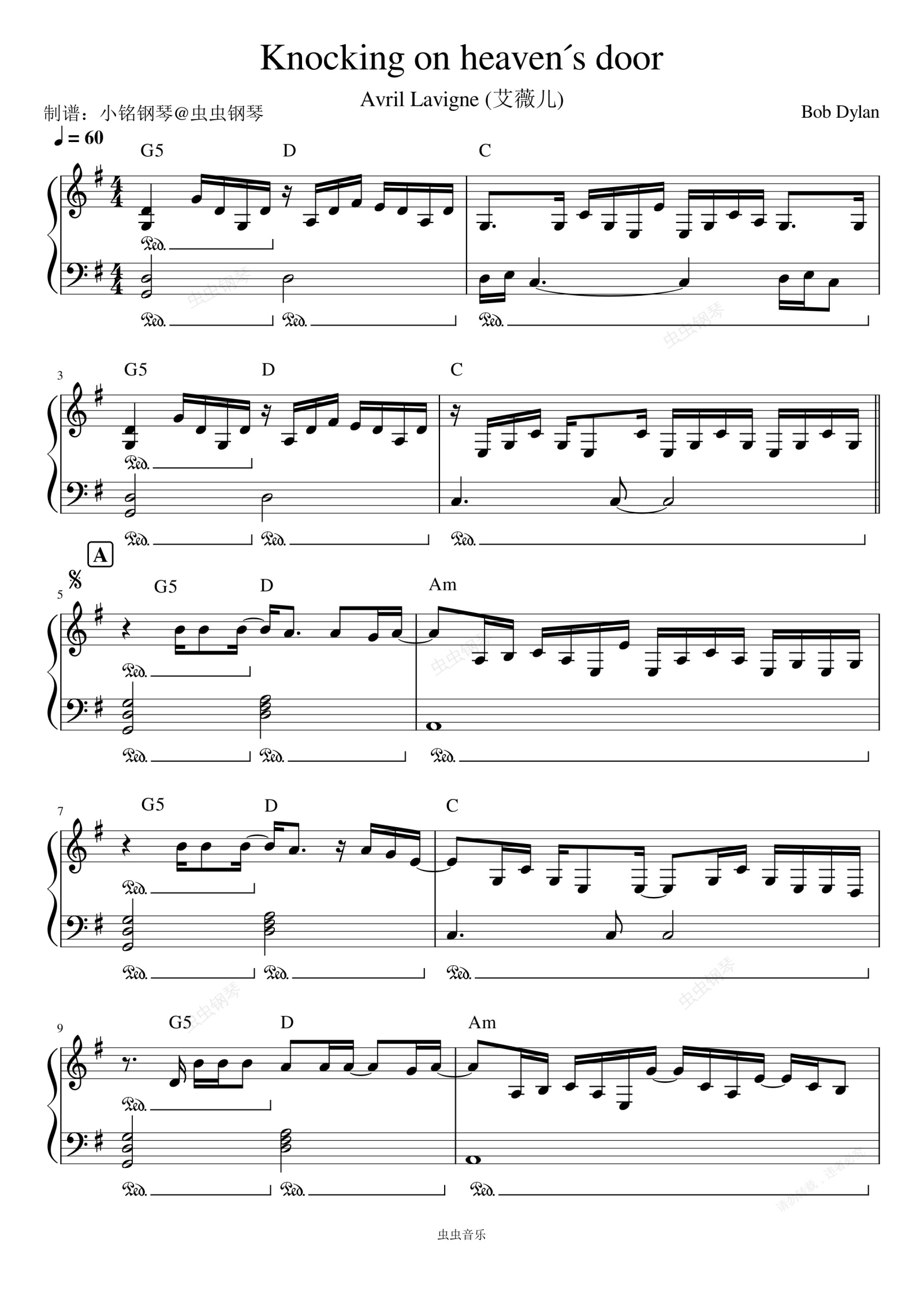 钢琴谱:Knocking On Heaven's Door (Live) - Avril Lavigne (艾薇儿)