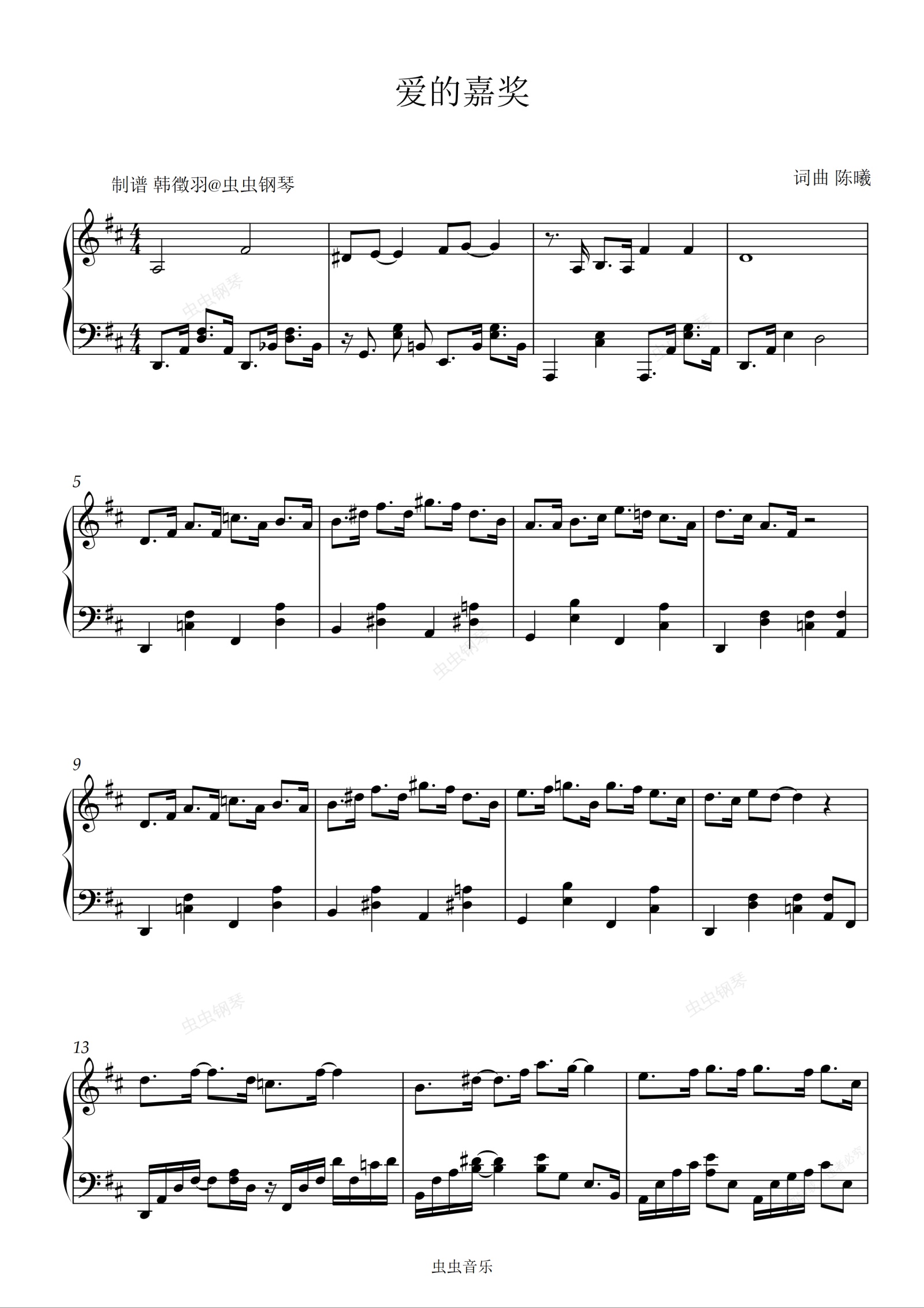 钢琴谱:爱的嘉奖 电视剧《爱的二八定律》主题曲 原调