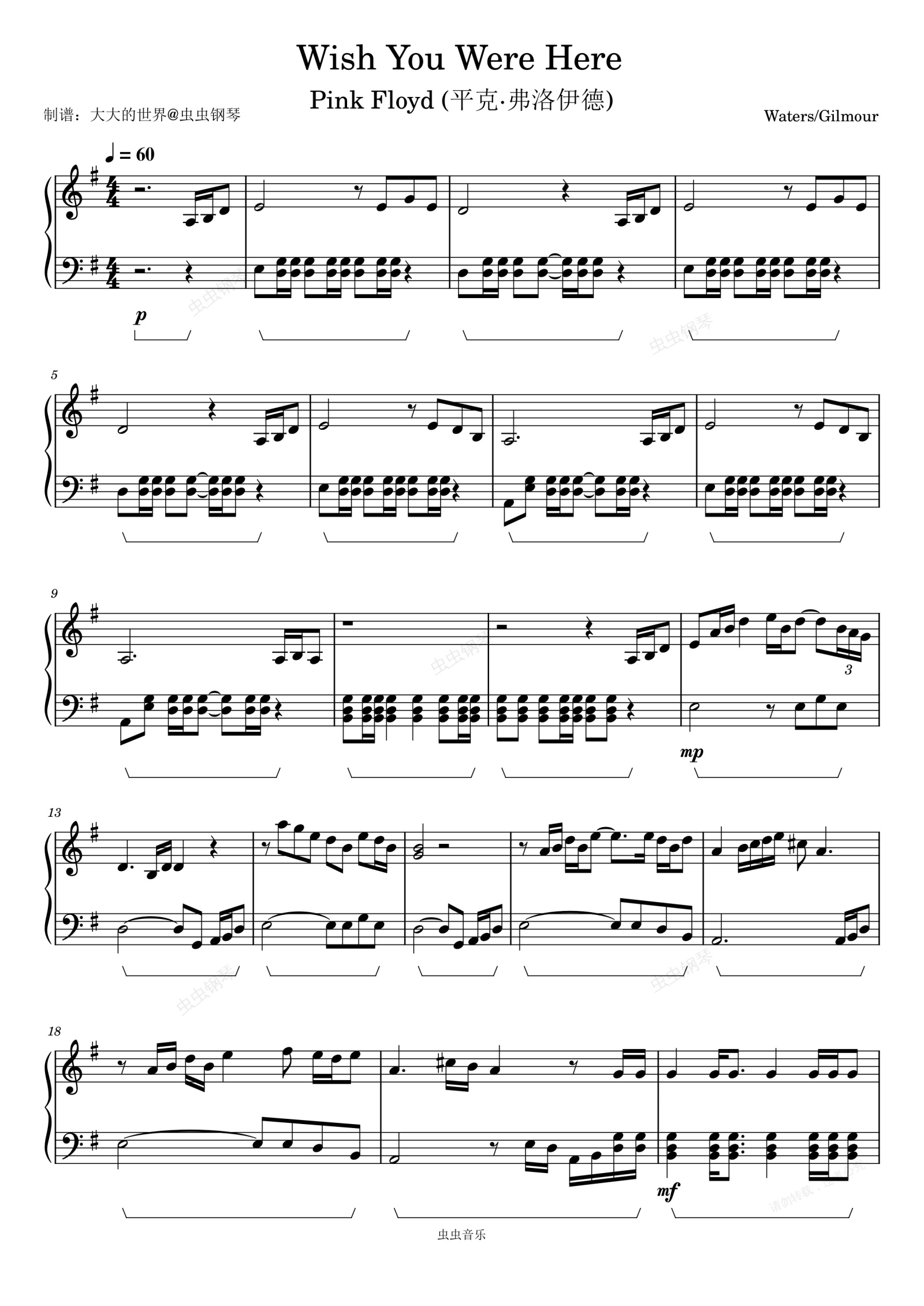钢琴谱:《Wish You Were Here》 - Pink Floyd (平克·弗洛伊德)