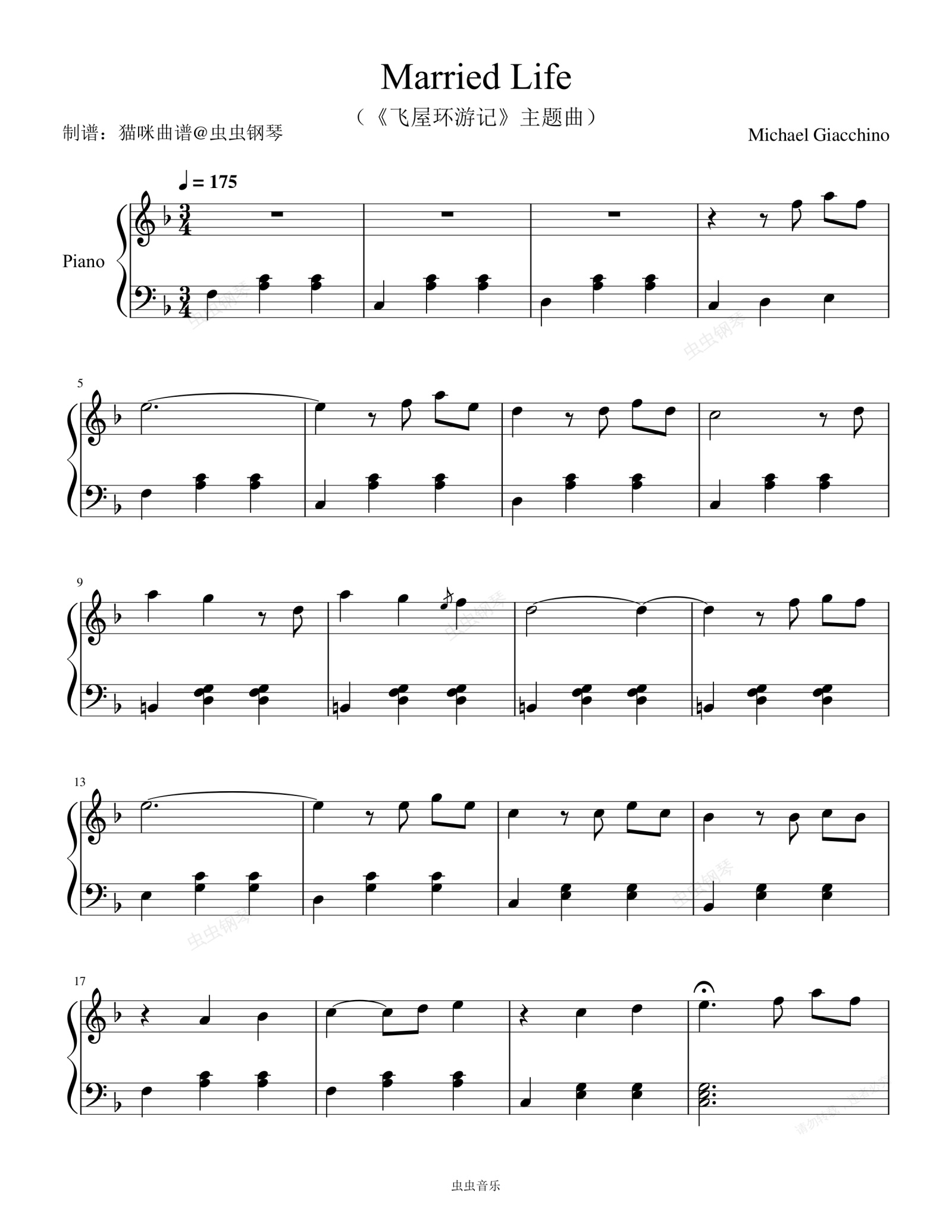 钢琴谱:Married Life - 《飞屋环游记》主题曲