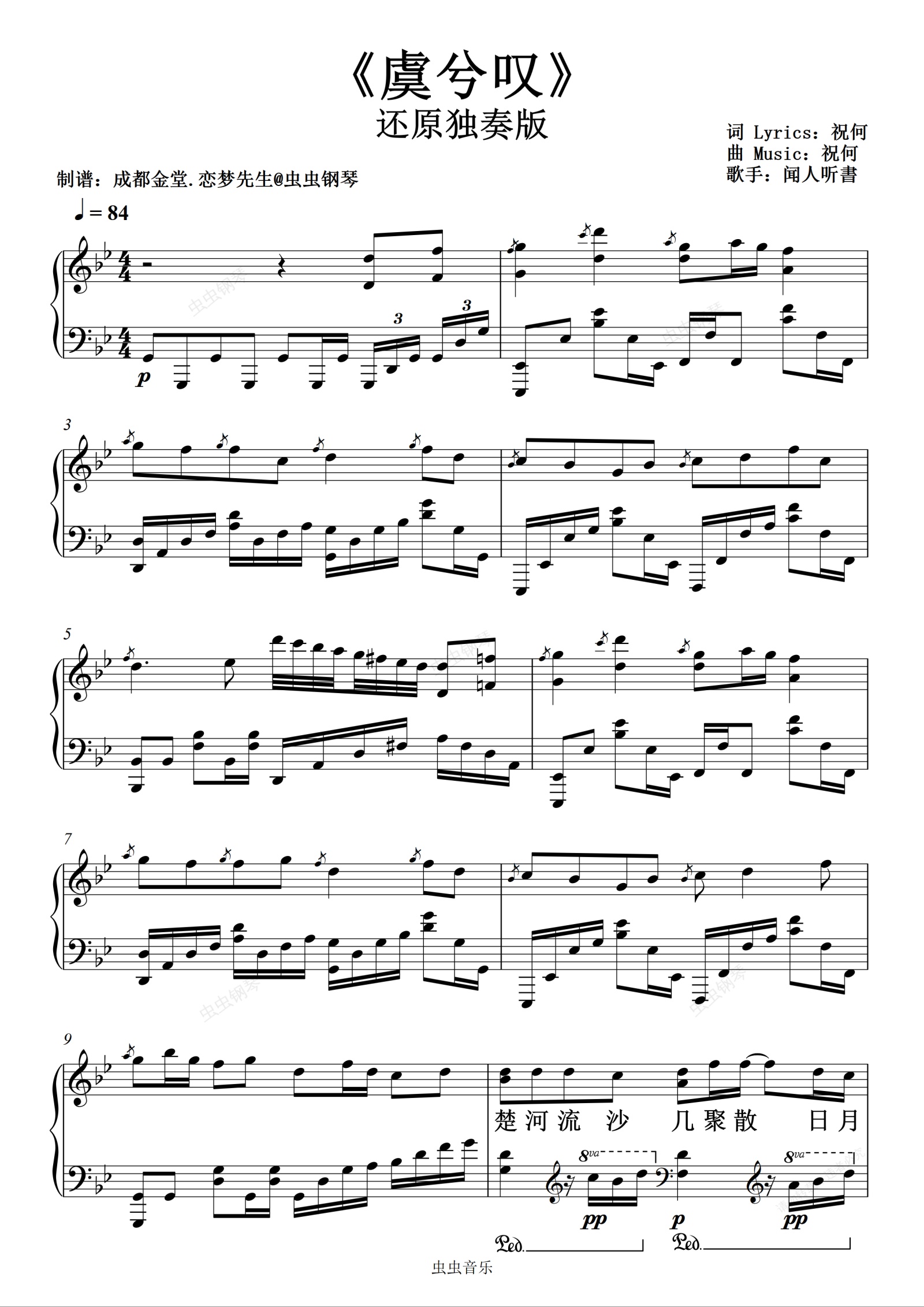 钢琴谱:《虞兮叹》- 闻人听書.还原独奏版