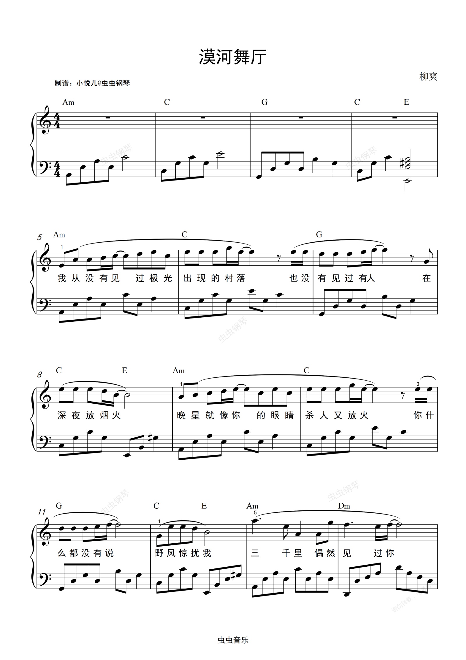 钢琴谱:漠河舞厅(C调简易版)