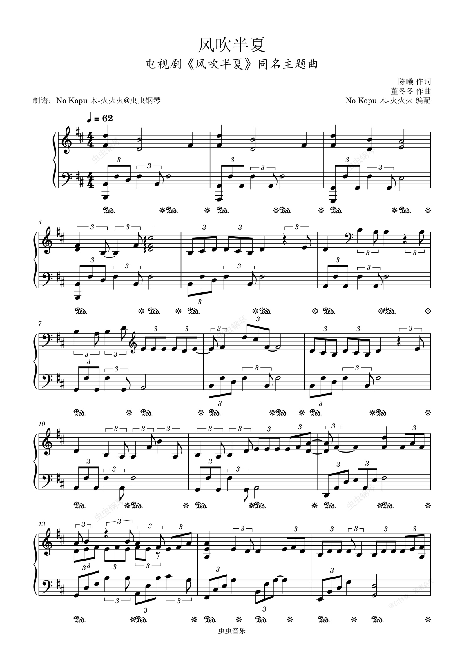 钢琴谱:精编-D-电视剧《风吹半夏》同名主题曲