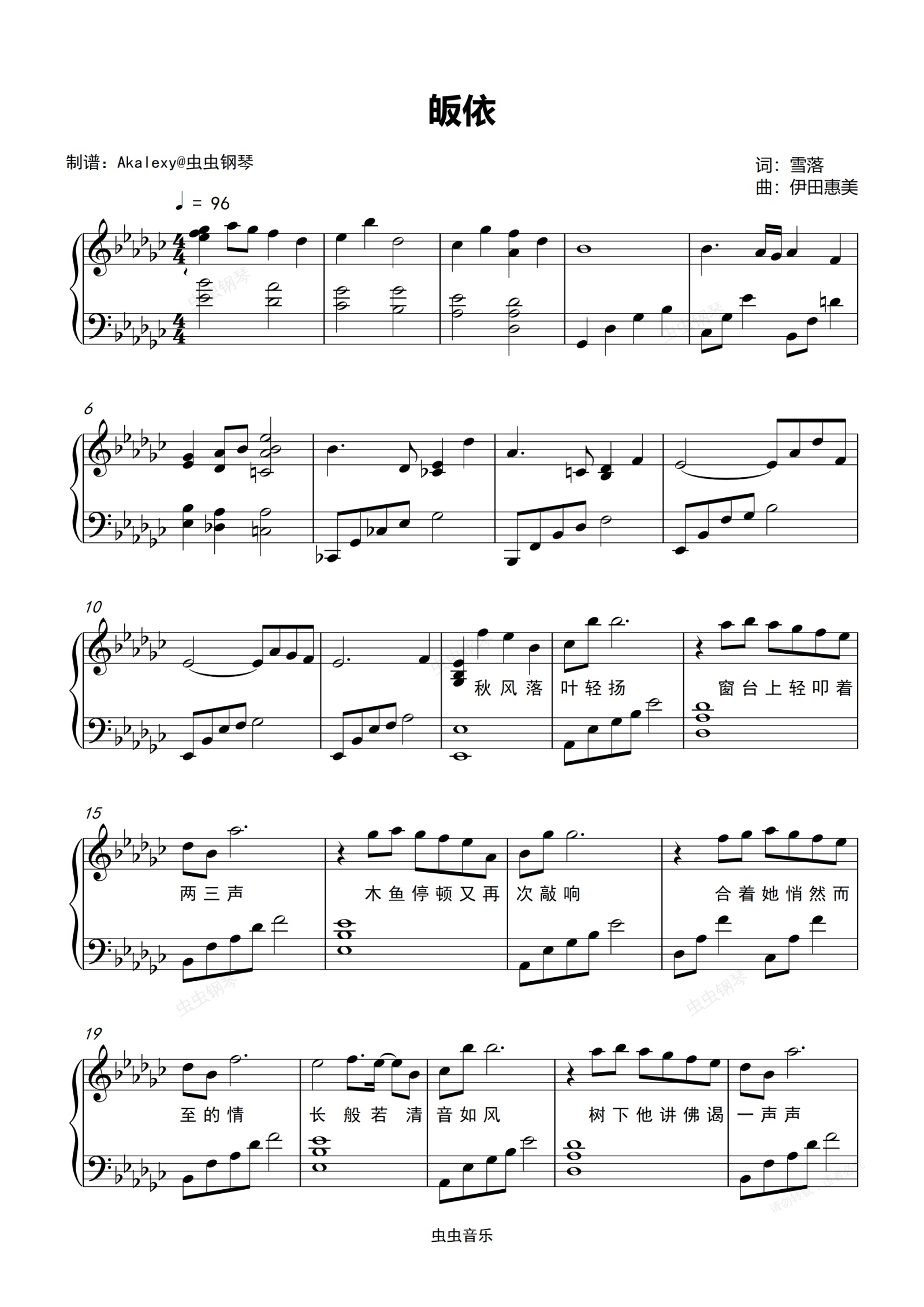 钢琴谱:皈依(弹唱版)