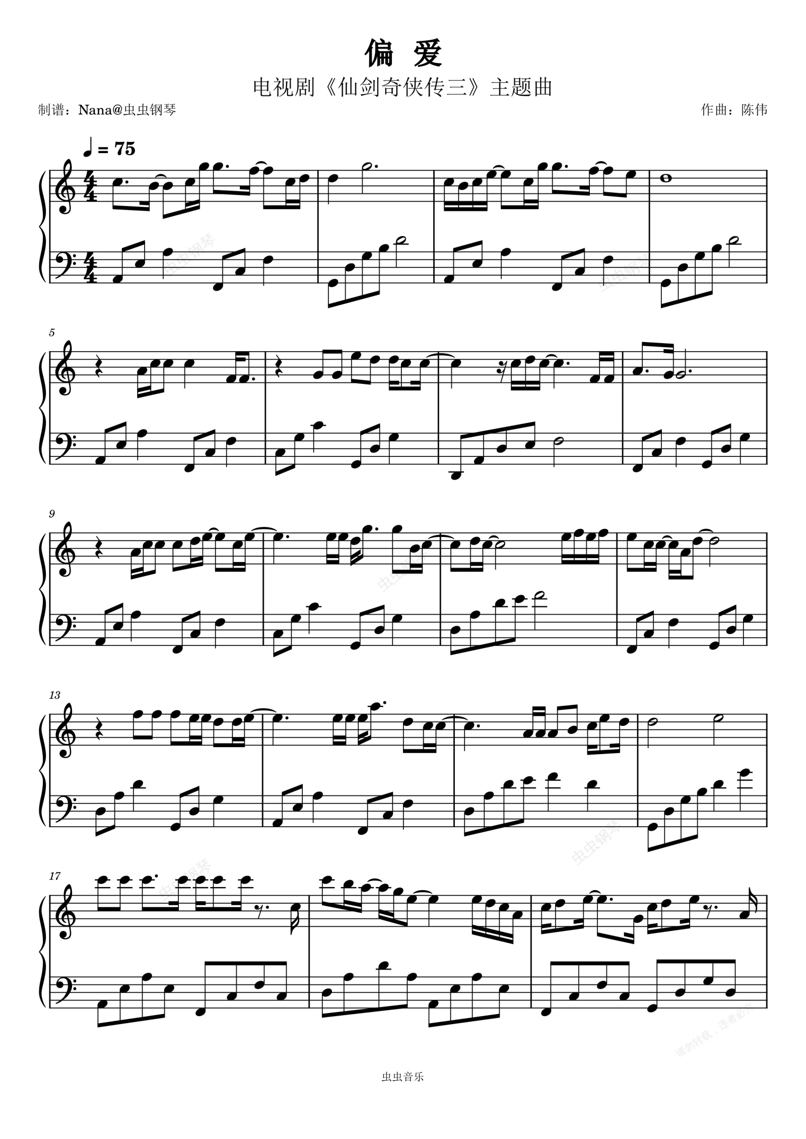 钢琴谱:《偏爱》-C调-张芸京《仙剑奇侠传》主题曲