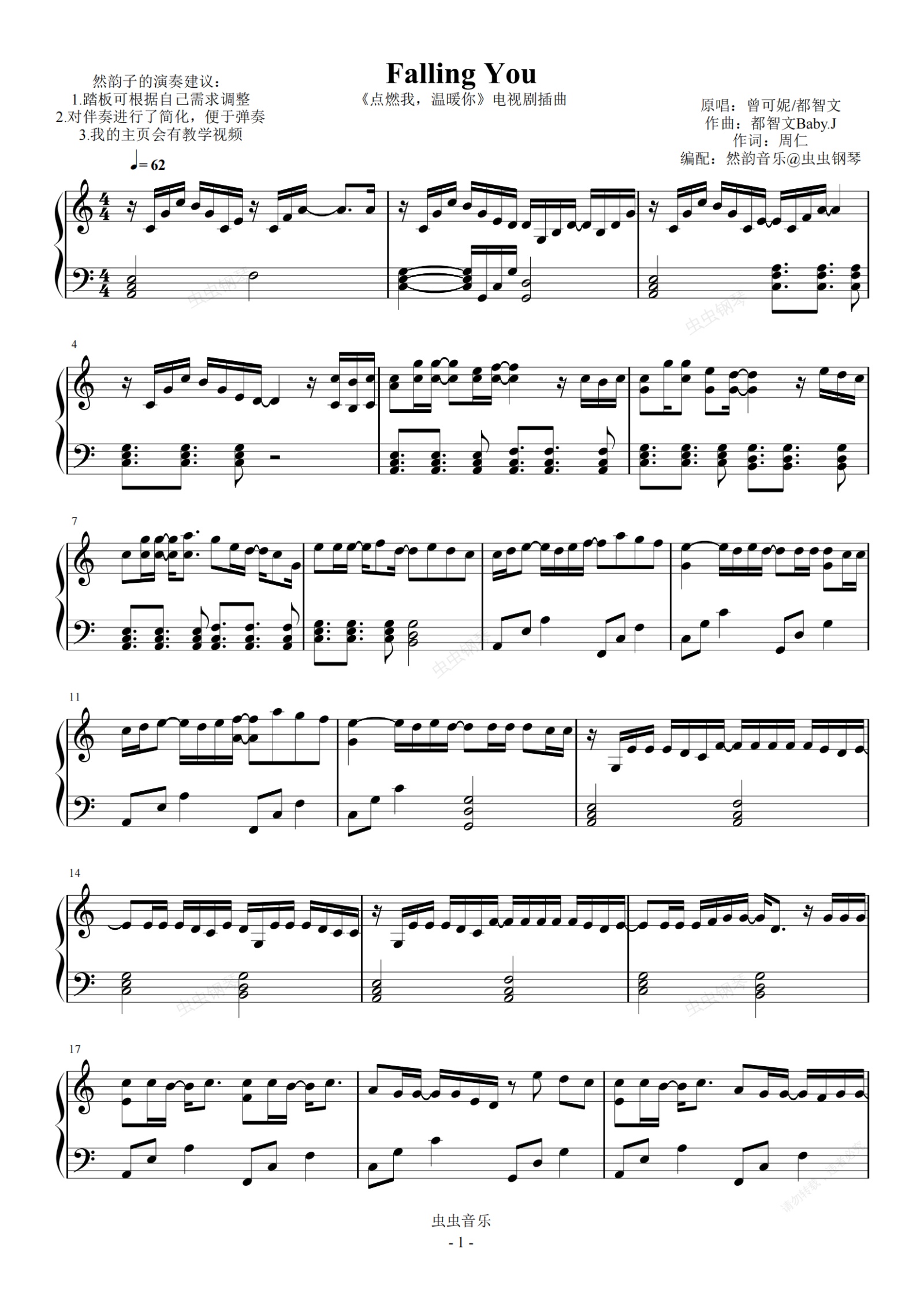 钢琴谱:【C调特惠】Falling You-《点燃我,温暖你》电视剧插曲 钢琴完美还原
