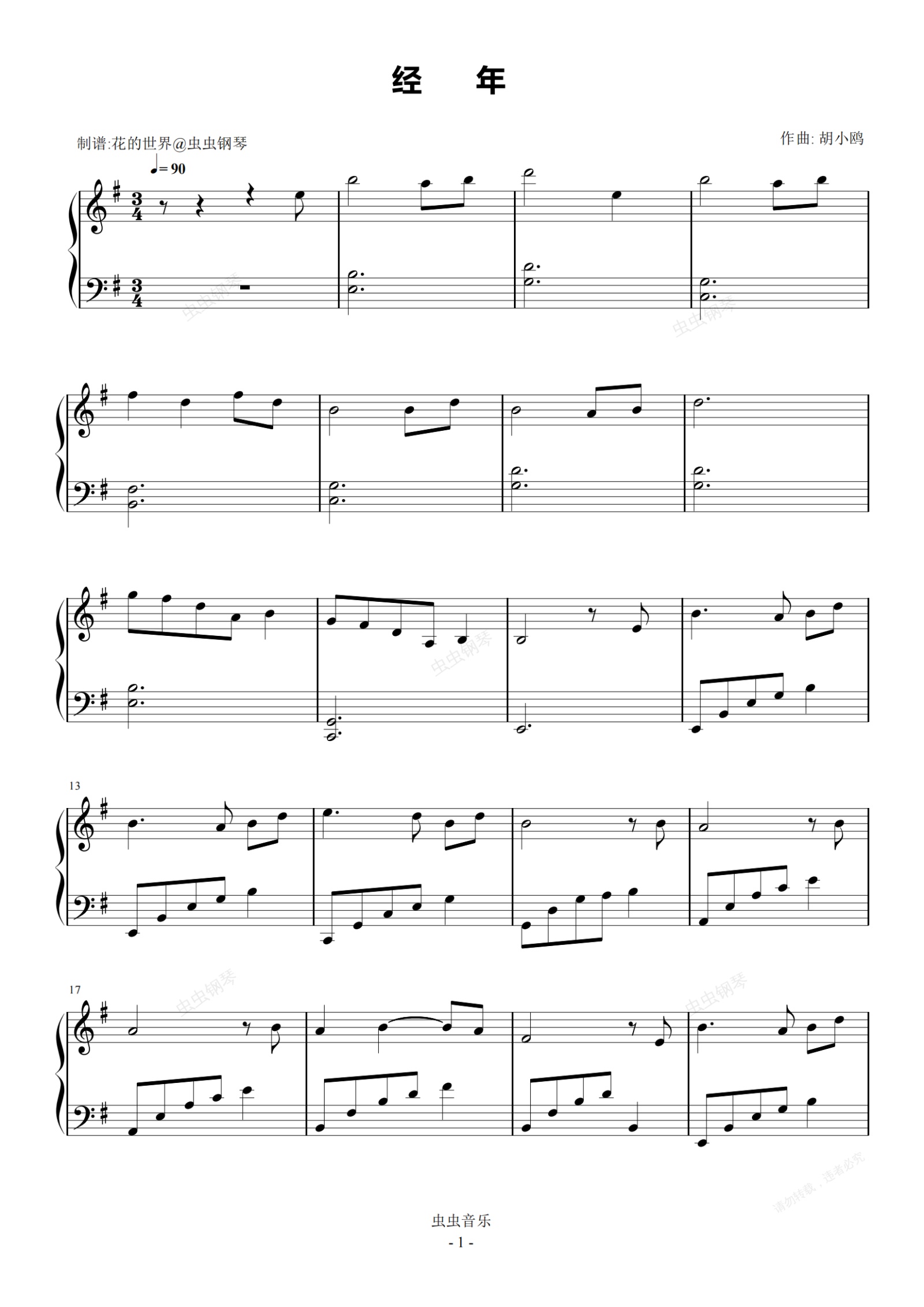 钢琴谱:经年 原调简易版 希林娜依高 卿卿日常