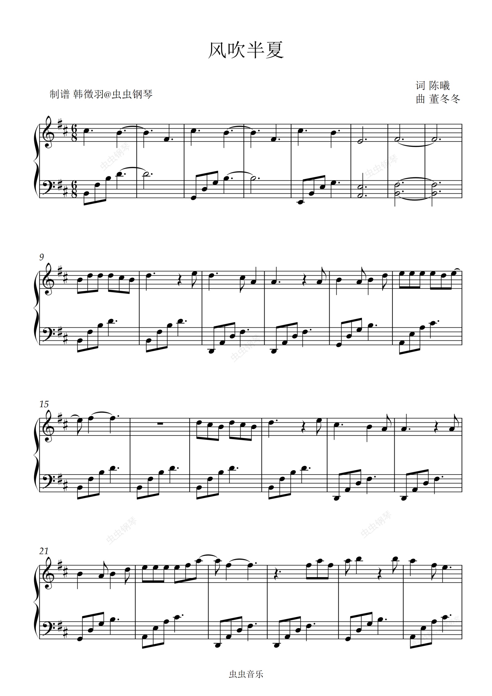 钢琴谱:风吹半夏 电视剧同名主题曲 原调 好听易弹