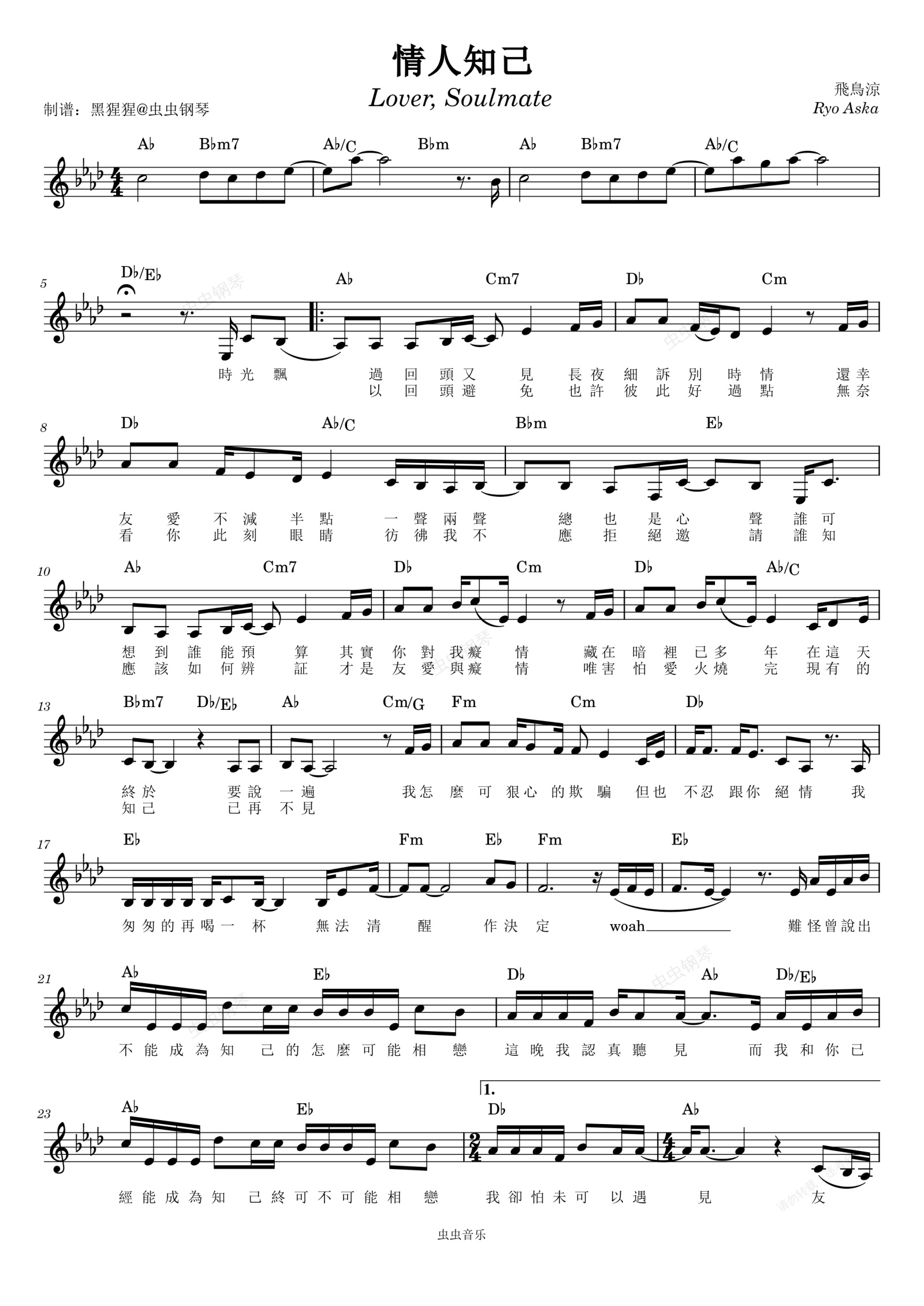 钢琴谱:叶倩文-Ab调 《情人知己》【带歌词】