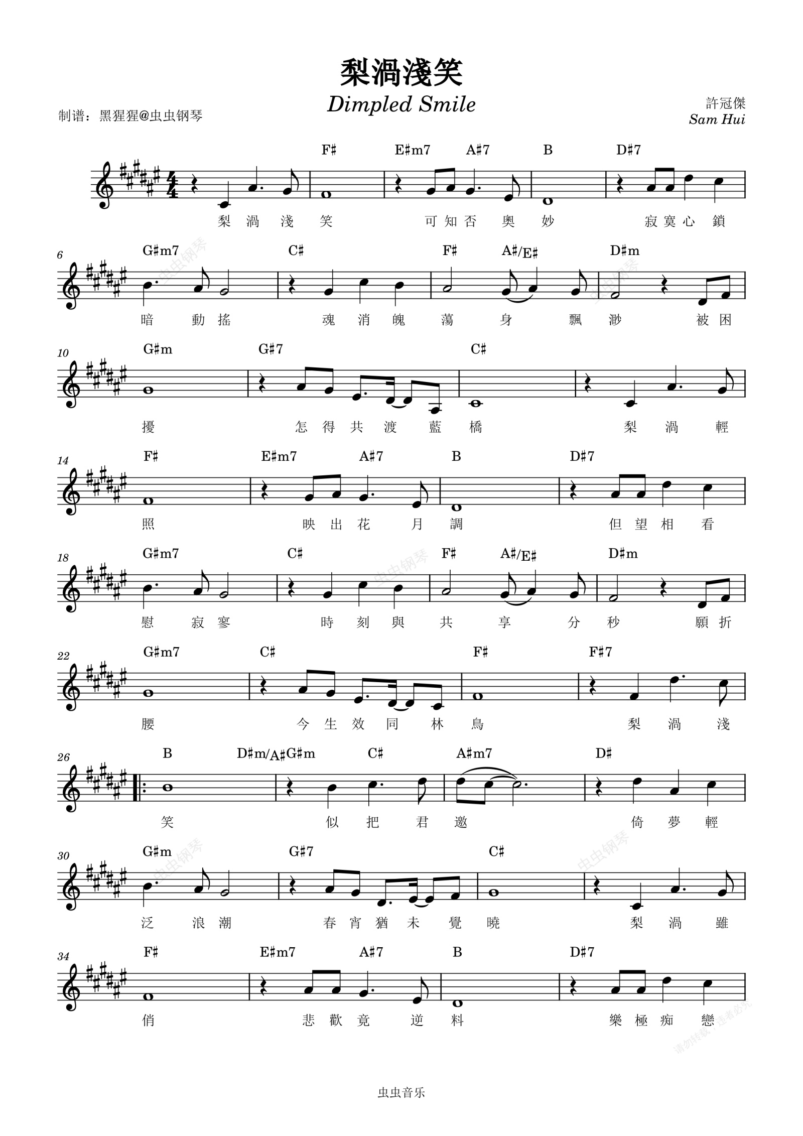 钢琴谱:许冠杰-Fb调 《梨涡浅笑》【带歌词】