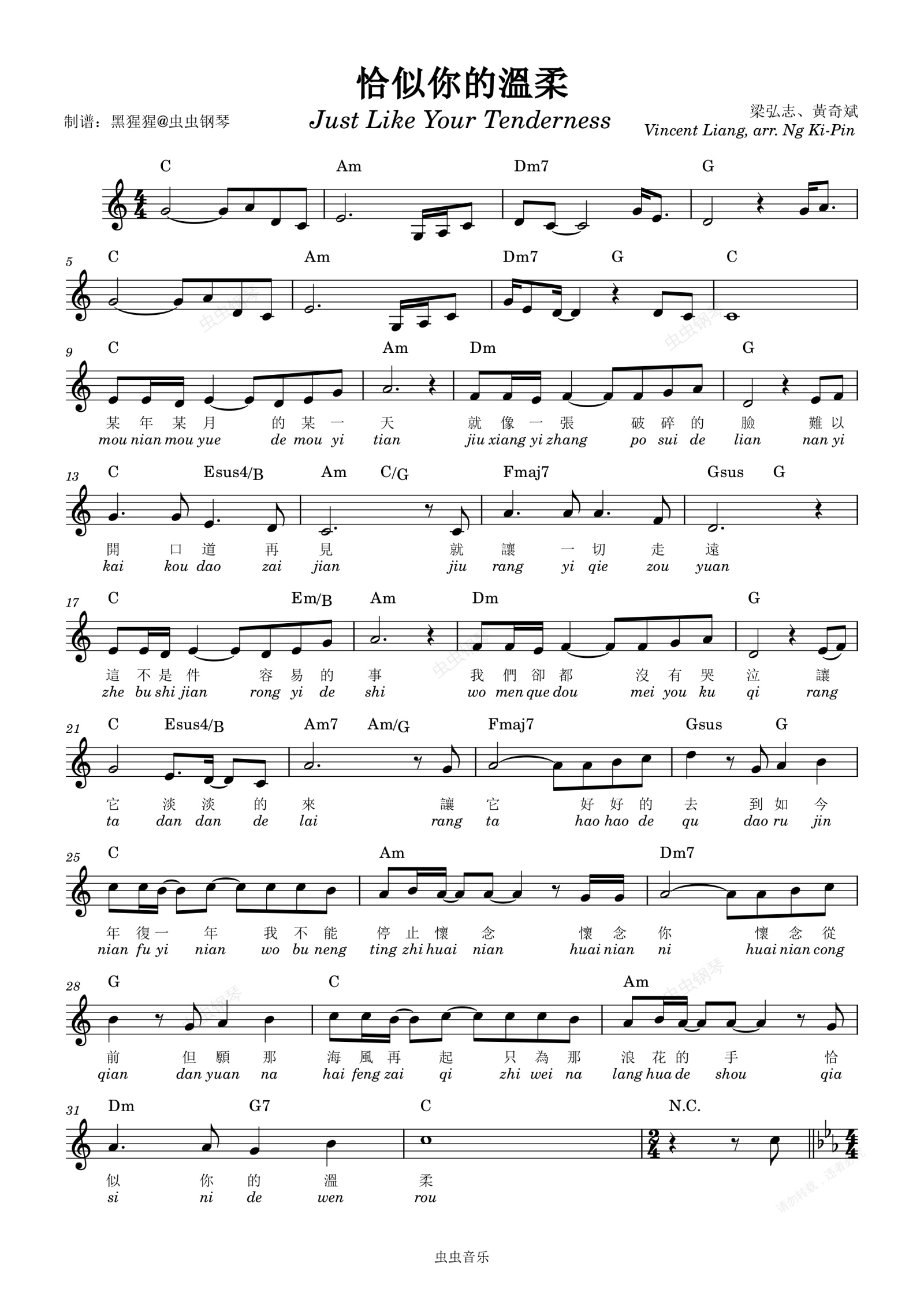 钢琴谱:茄子蛋-C调 《恰似你的温柔》【带歌词】