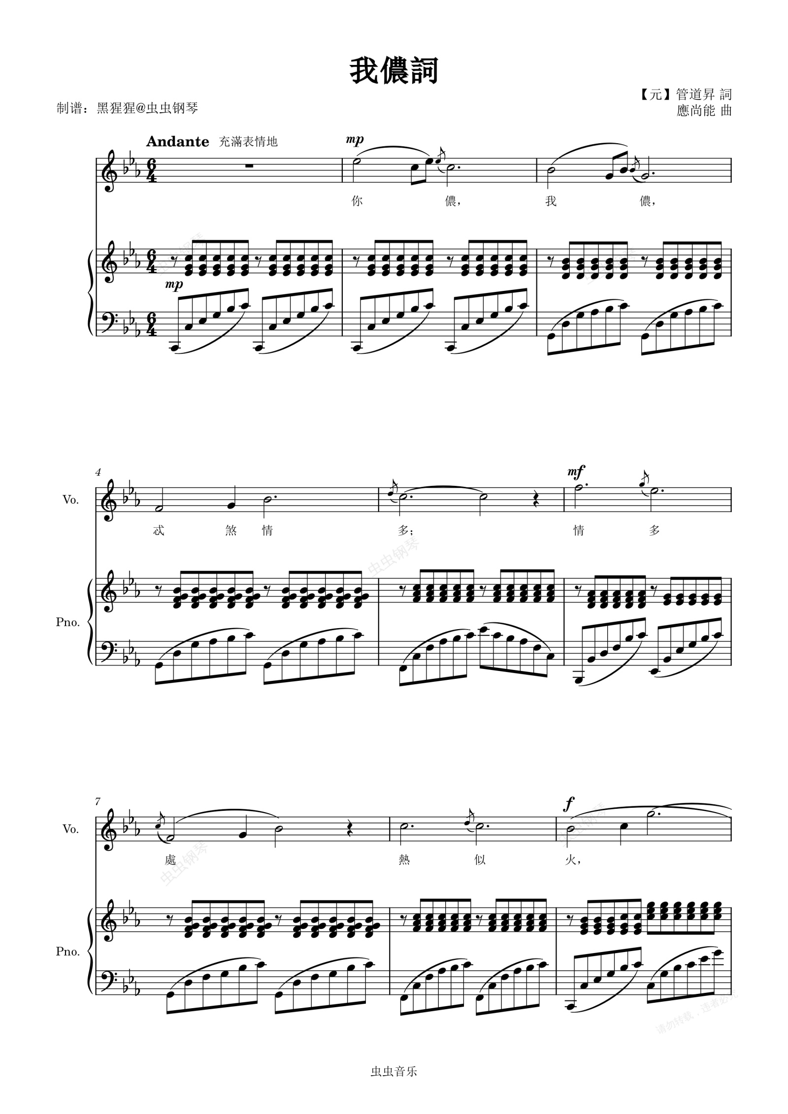 钢琴谱:应尚能-Eb调 《我侬词》【带歌词】