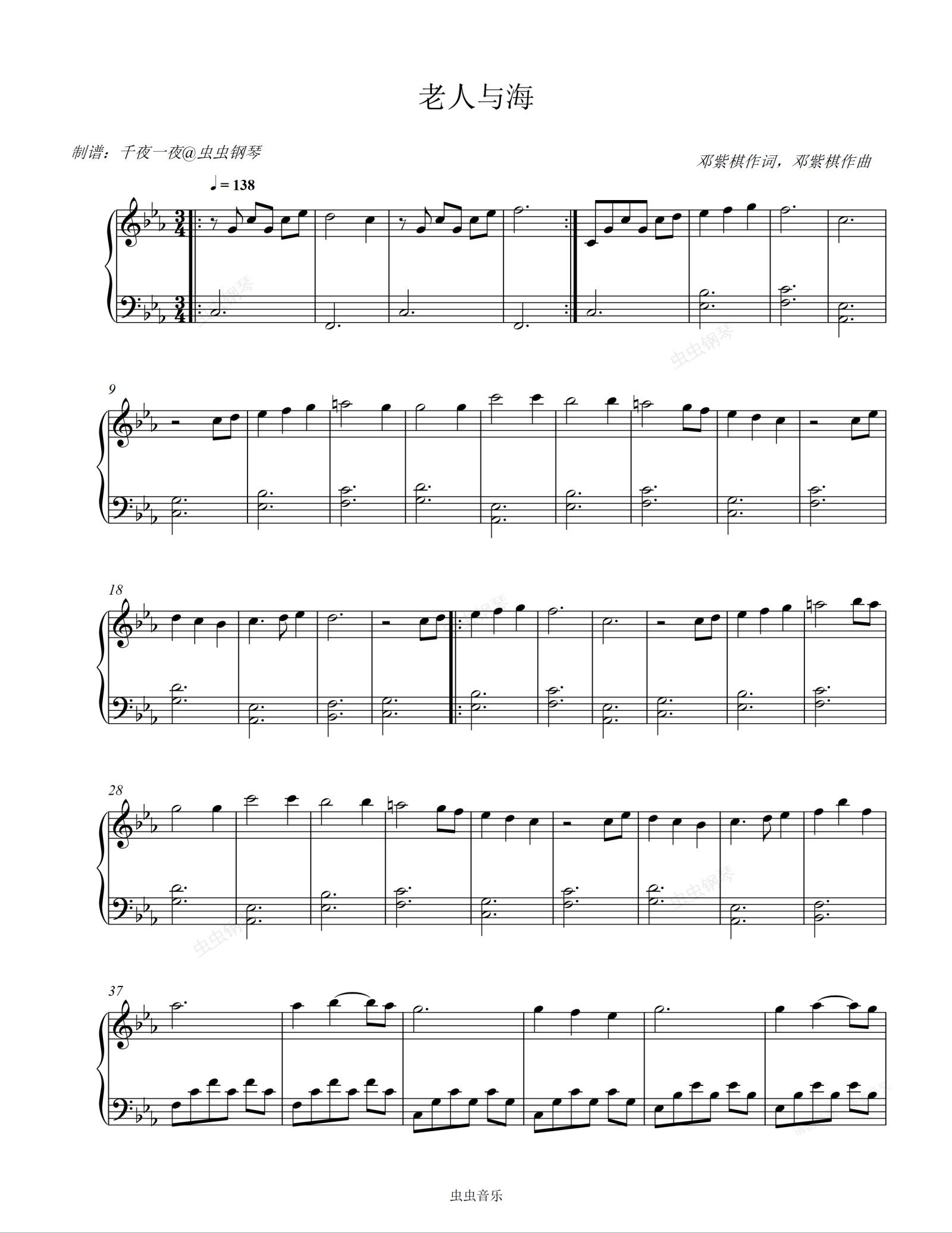 钢琴谱:G.E.M.邓紫棋《老人与海》钢琴版「桑田沧海 爱是依旧无改」