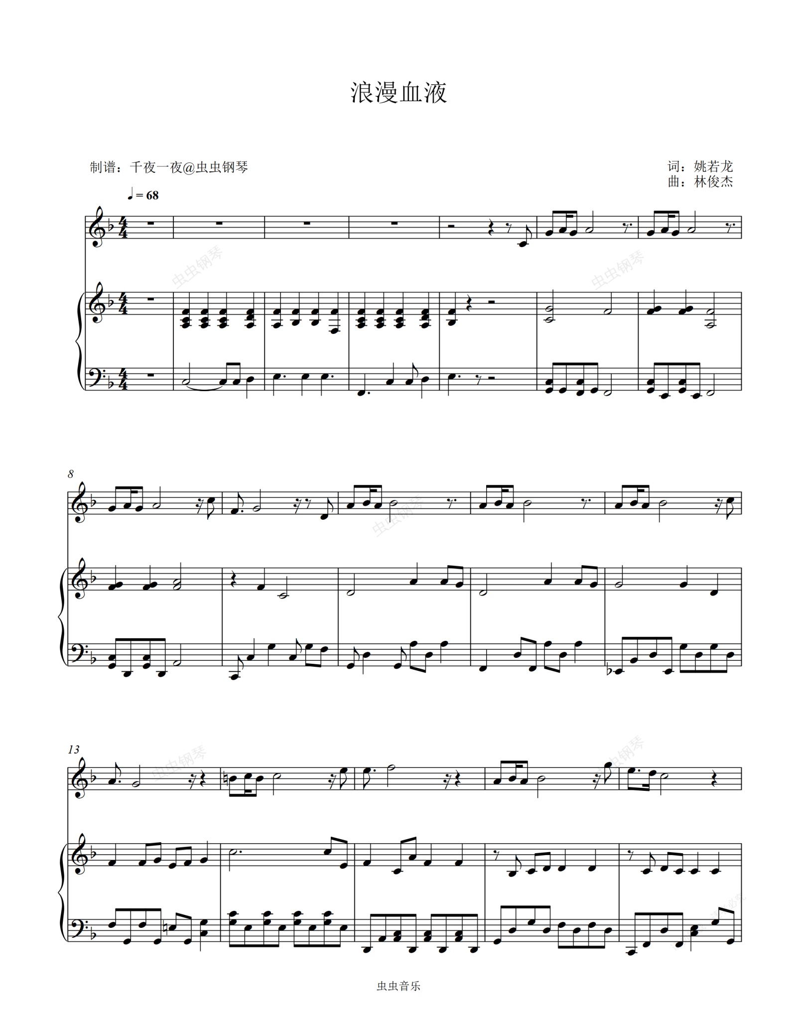 钢琴谱:林俊杰《浪漫血液》钢琴版“学会维系爱情,以后不用再惋惜”