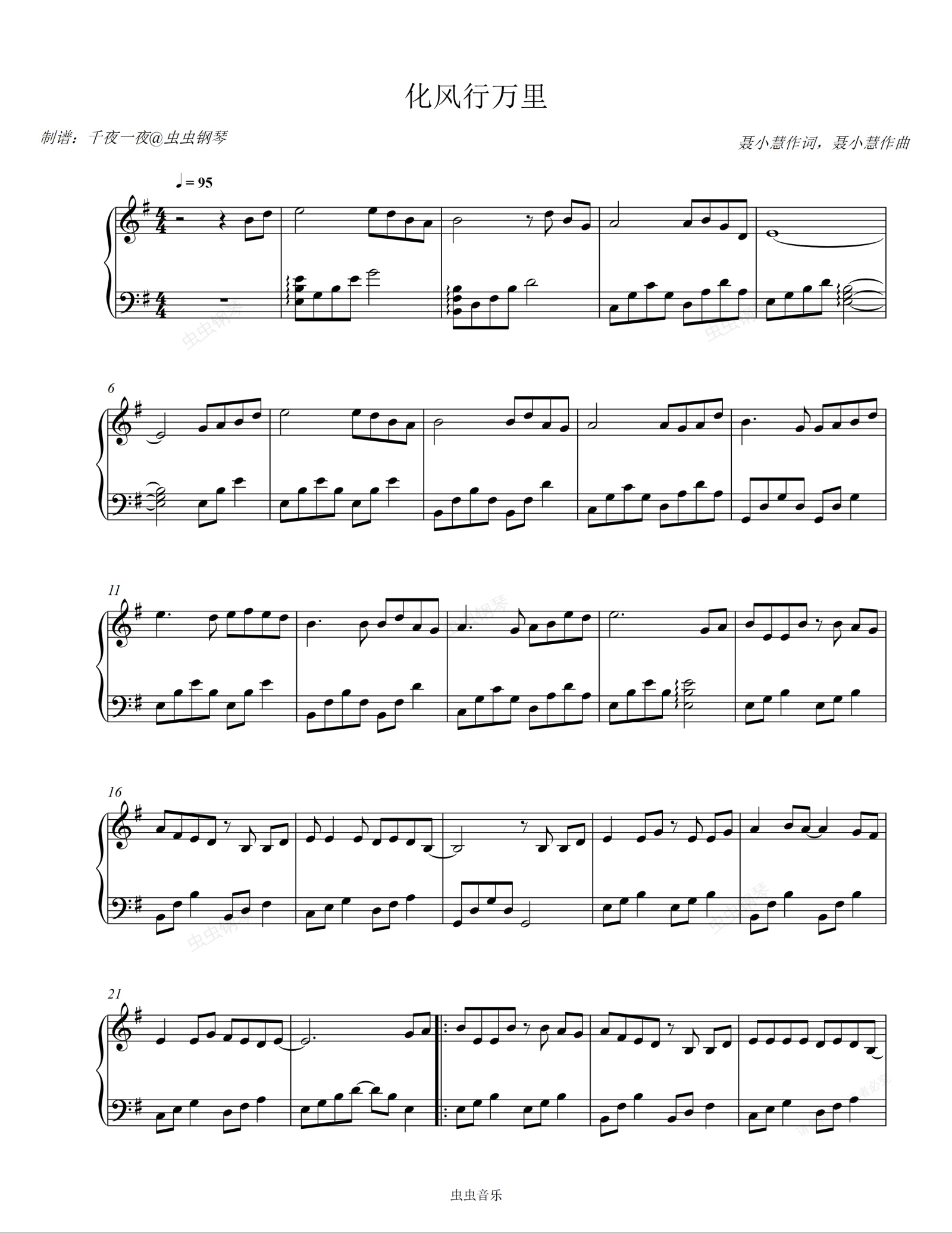 钢琴谱:《化风行万里 简单完整版》钢琴简谱弹奏曲!