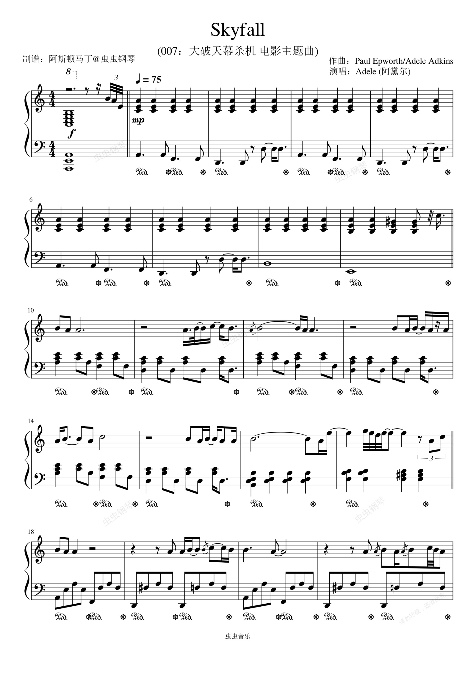 钢琴谱:Skyfall - Adele (阿黛尔) -【C调简单易弹版】 (007:大破天幕杀机 电影主题曲)