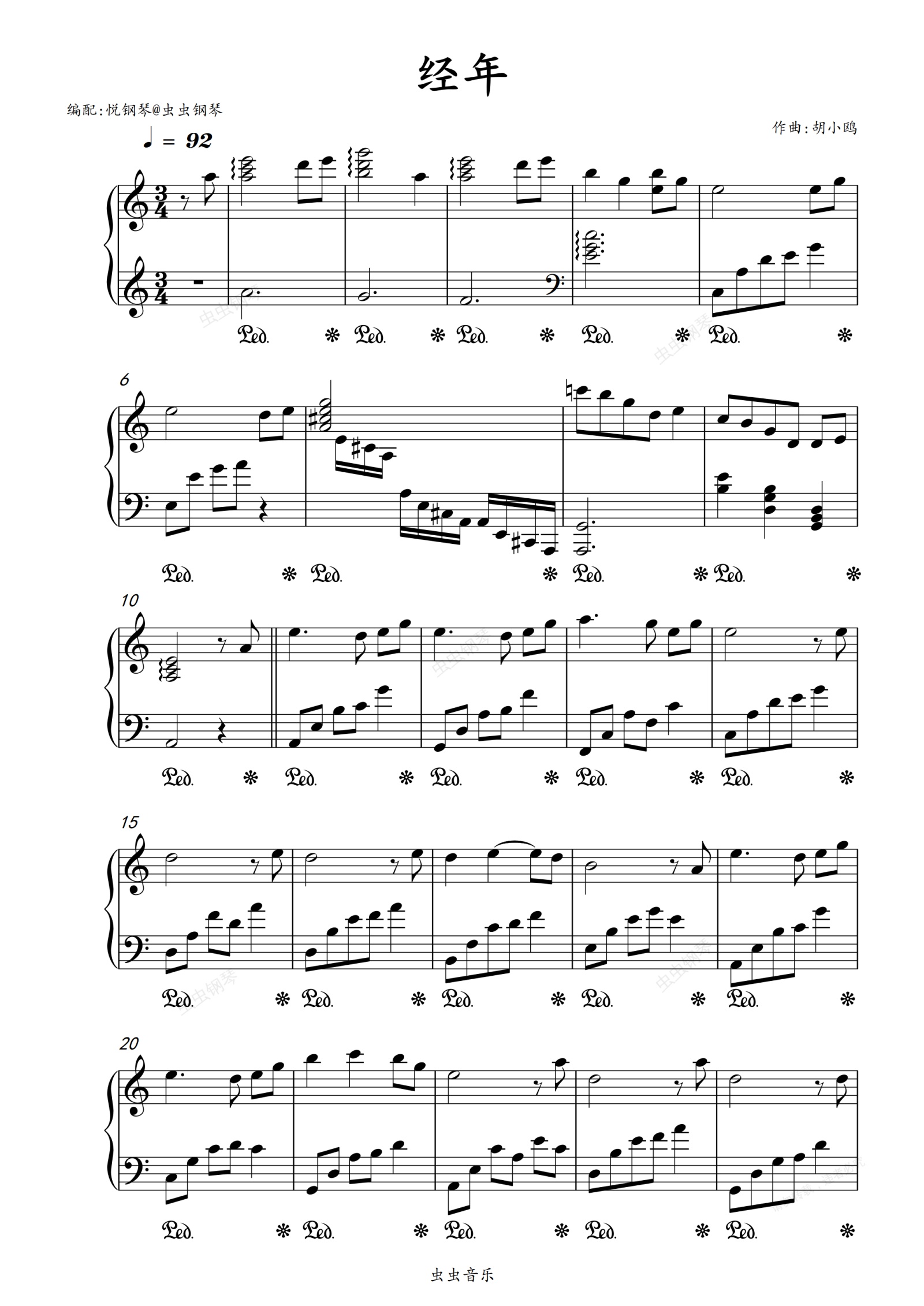 钢琴谱:经年 (电视剧《卿卿日常》片尾曲) - 希林娜依高