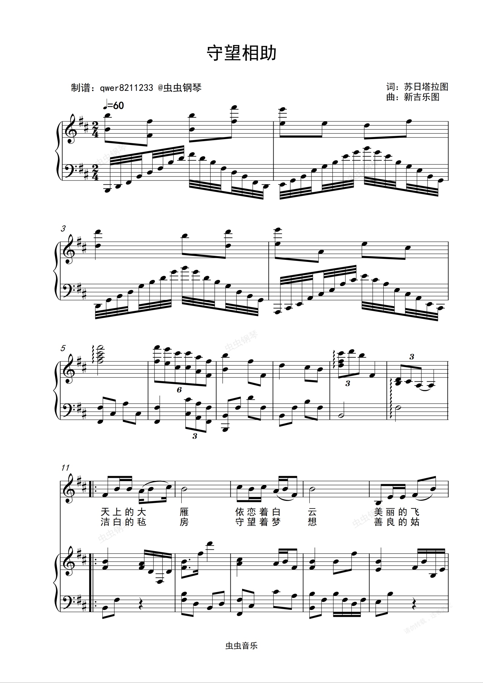 钢琴谱:守望相助