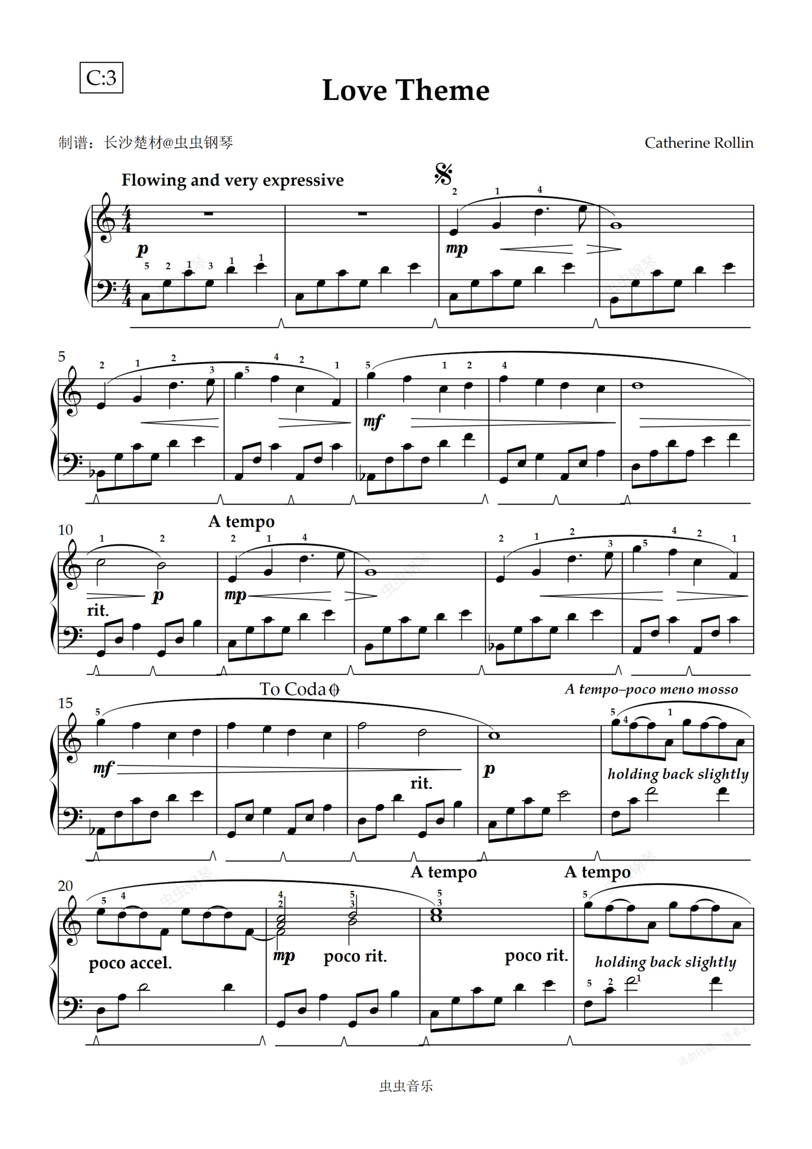钢琴谱:10.Love Theme Catherine Rollin