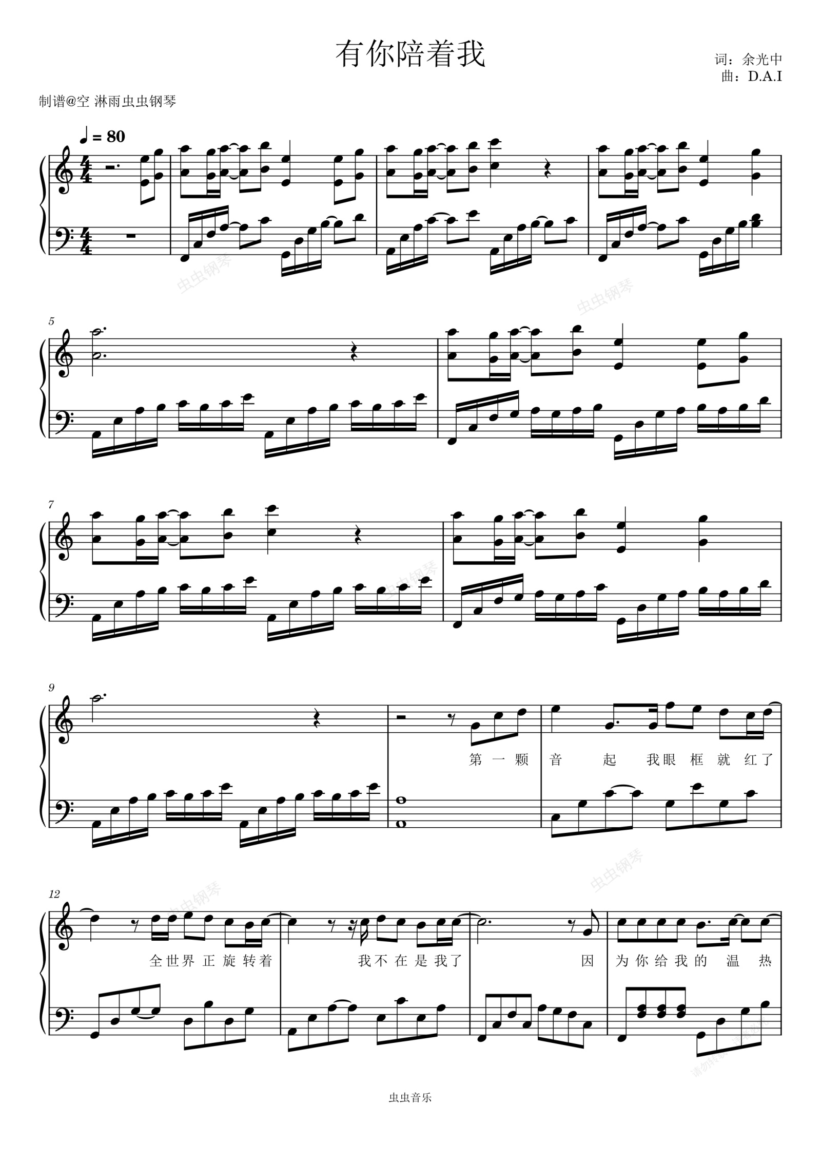 钢琴谱:安又琪 有你陪着我