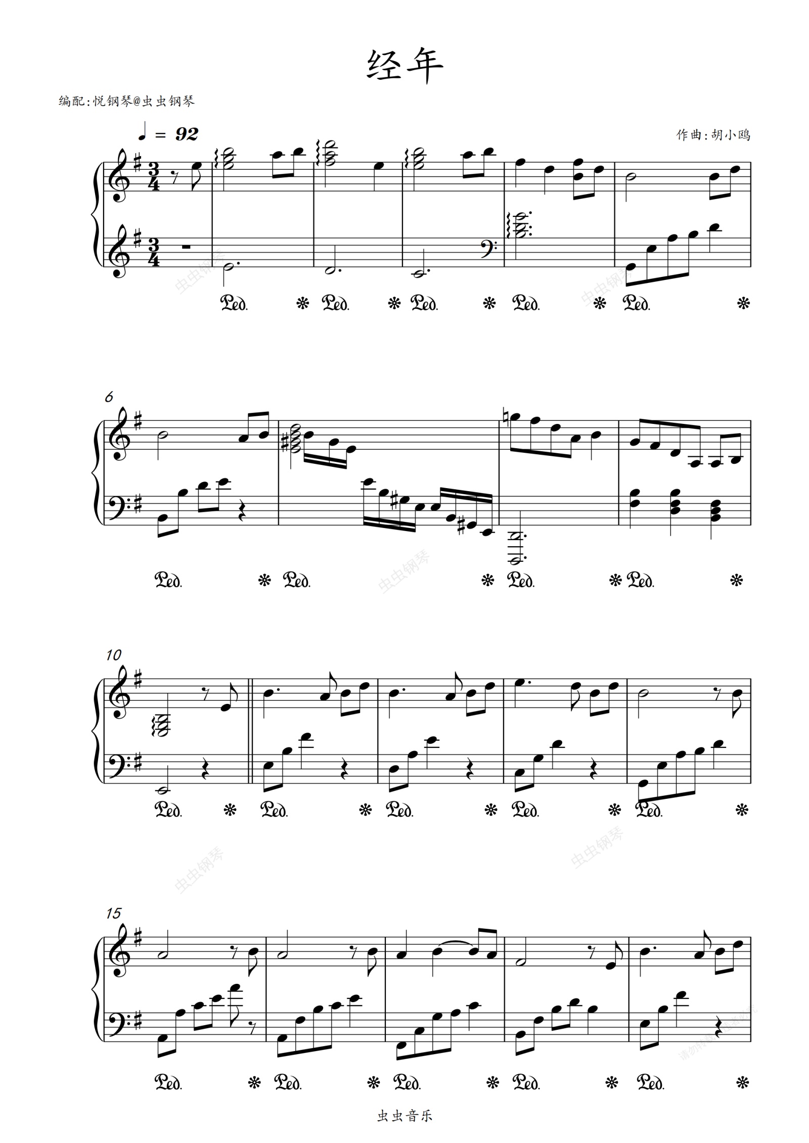 钢琴谱:经年 原调版(电视剧《卿卿日常》片尾曲) - 希林娜依高