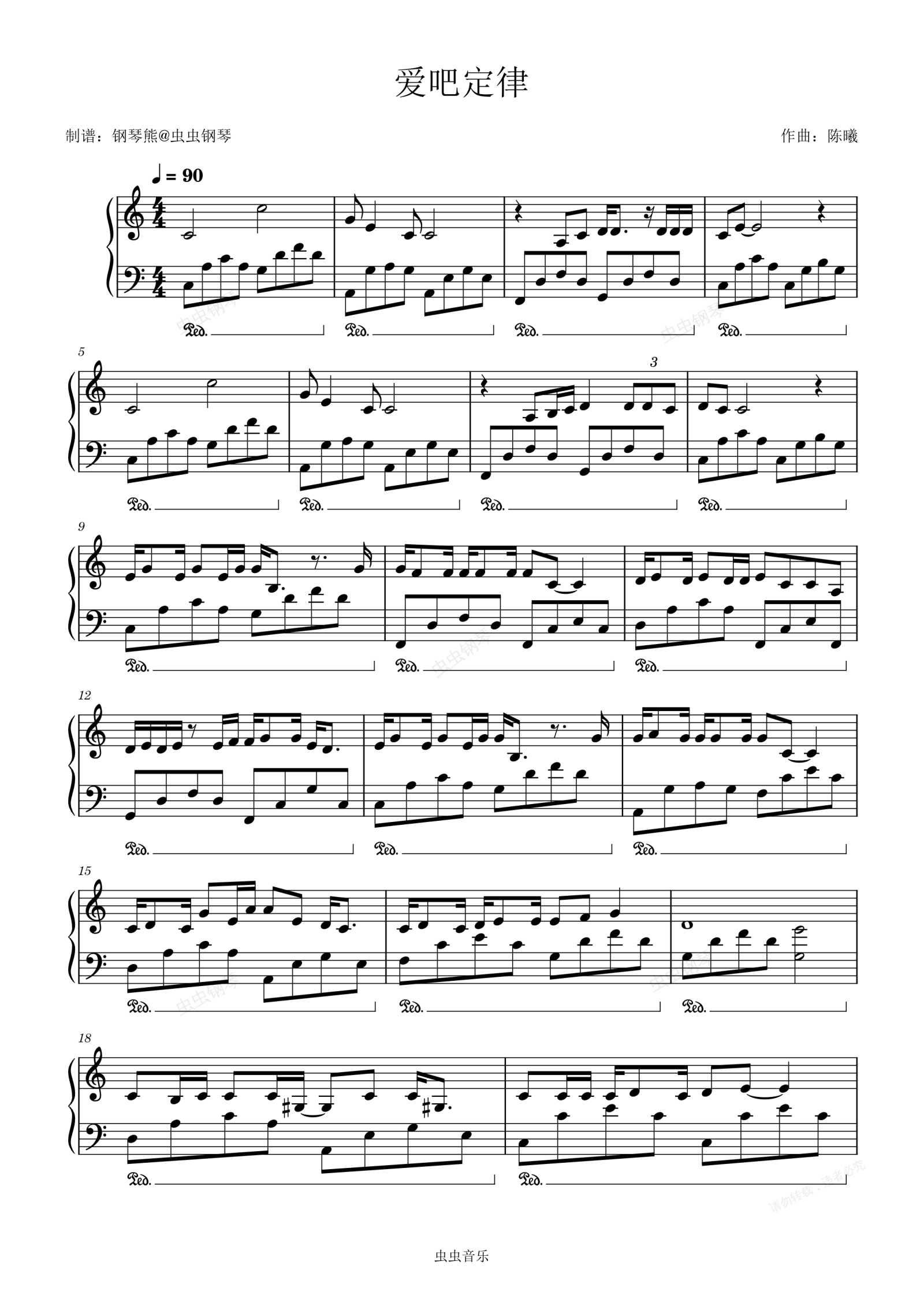 钢琴谱:初学者版《爱吧定律》爱的二八定律主题曲