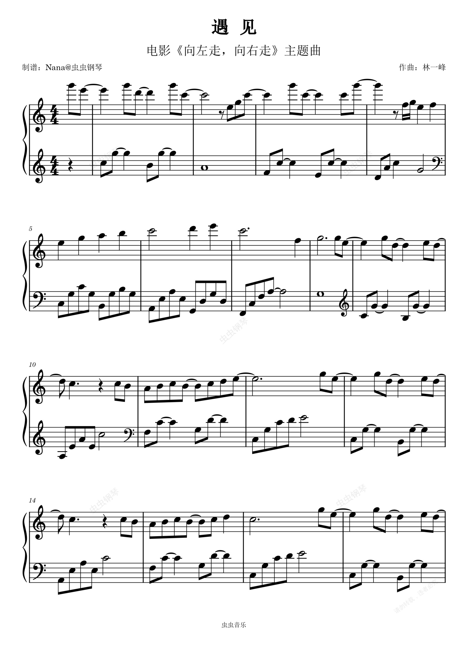 钢琴谱:《遇见》-孙燕姿-C调温柔版