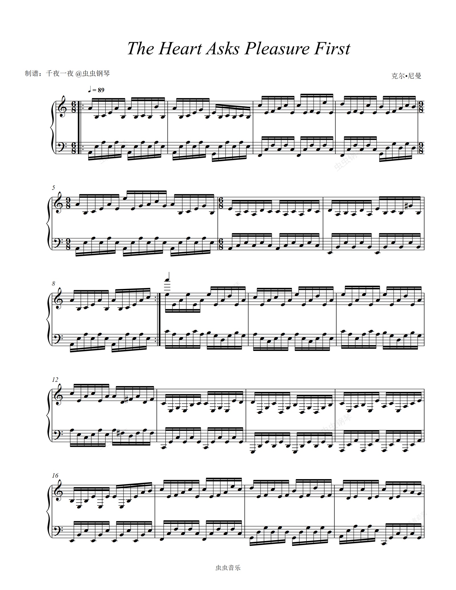 钢琴谱:经典电影《钢琴课》主题曲 The Heart Asks Pleasure First
