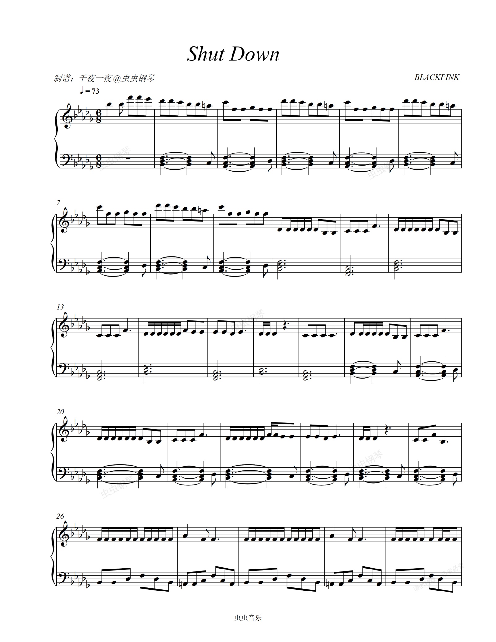 钢琴谱:钢琴速翻 |Shut Down- BLACKPINK 钢琴版