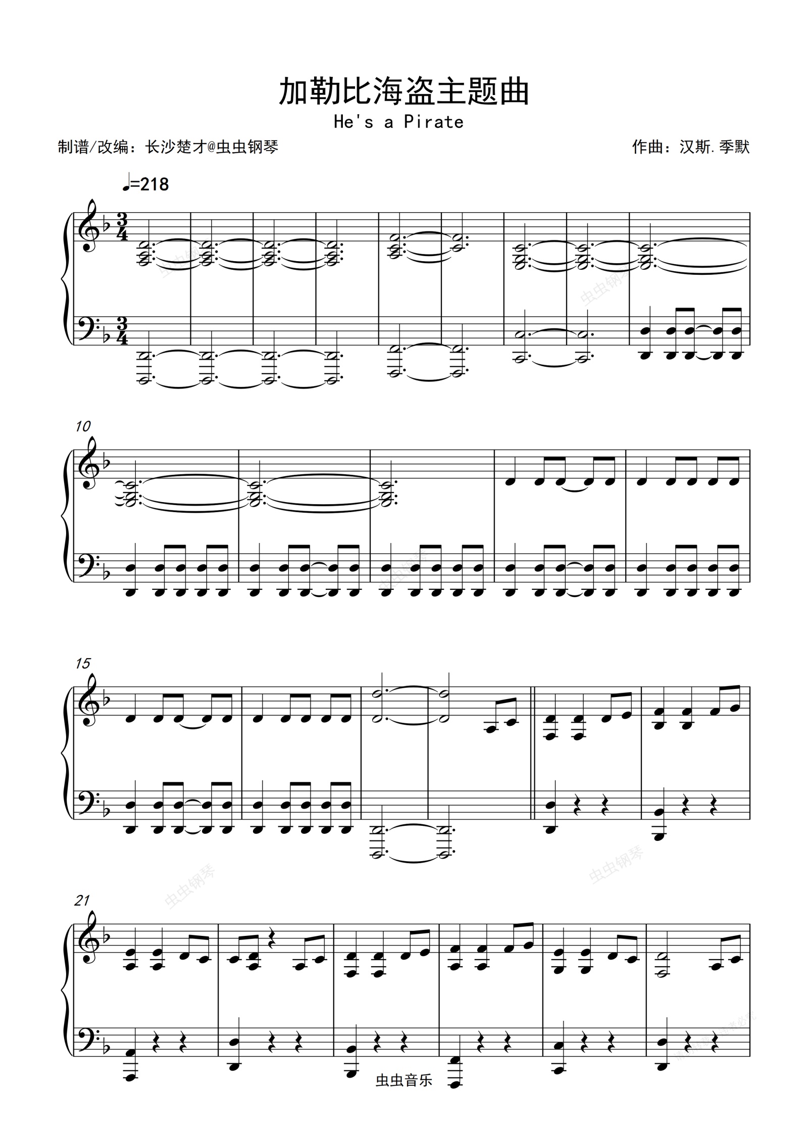 钢琴谱:燃爆全场的加勒比海盗《He's a Pirate 》钢琴与乐队