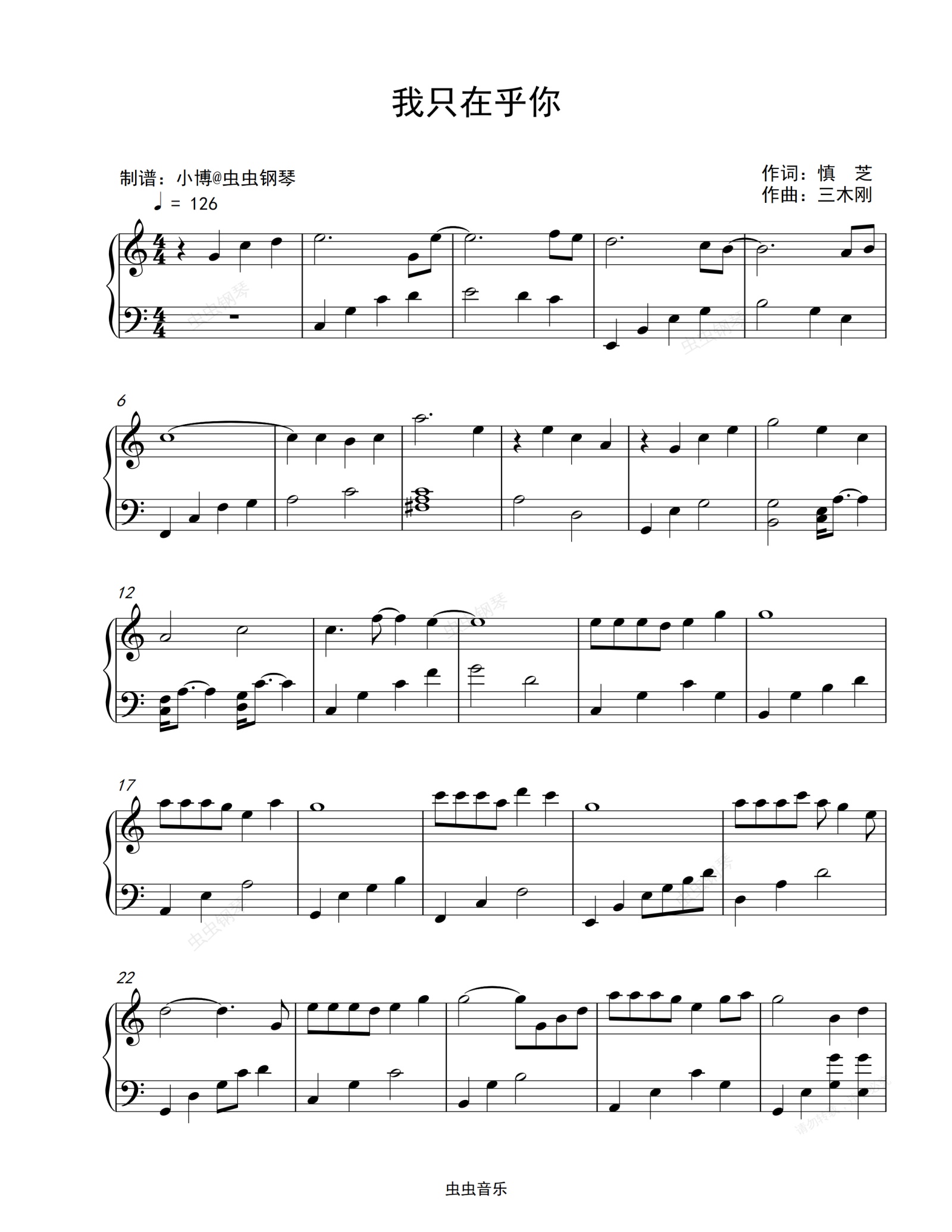 钢琴谱:我只在乎你-邓丽君-简单好听版