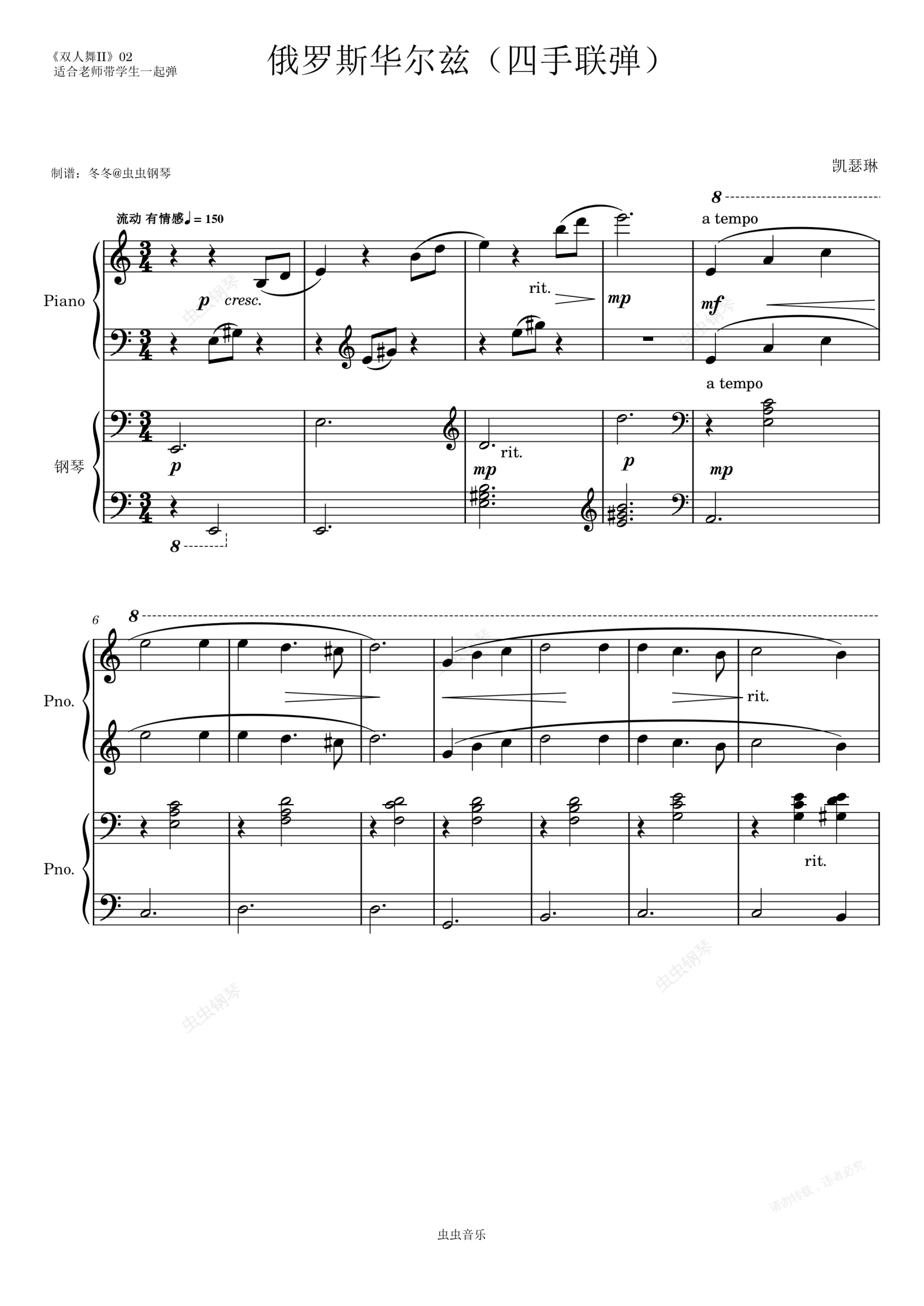 钢琴谱:俄罗斯华尔兹(四手联弹)