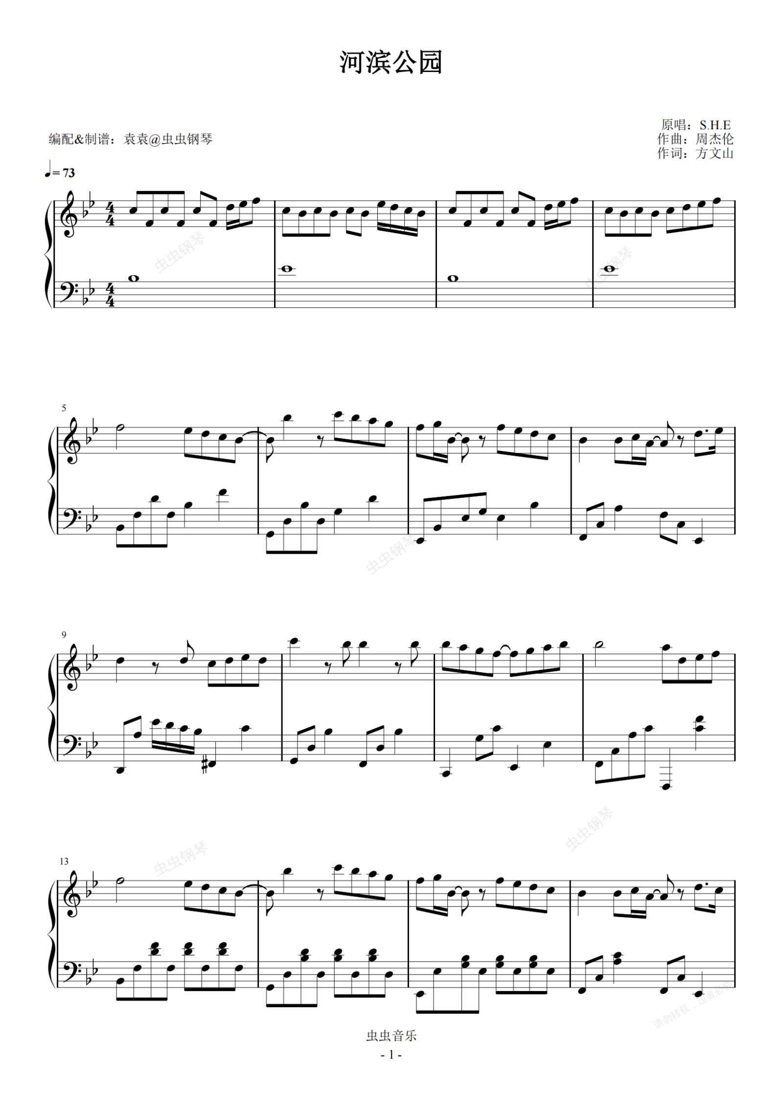 钢琴谱:河滨公园 S.H.E 抒情演奏版 原调