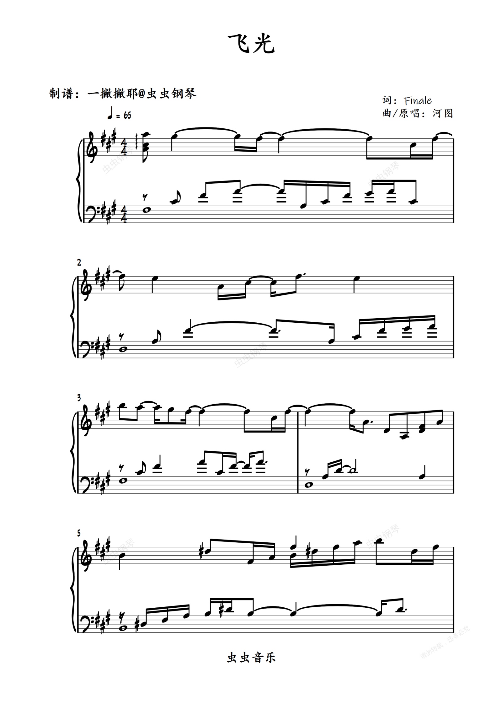 钢琴谱:飞光【弹唱伴奏谱】河图「一撇撇耶」