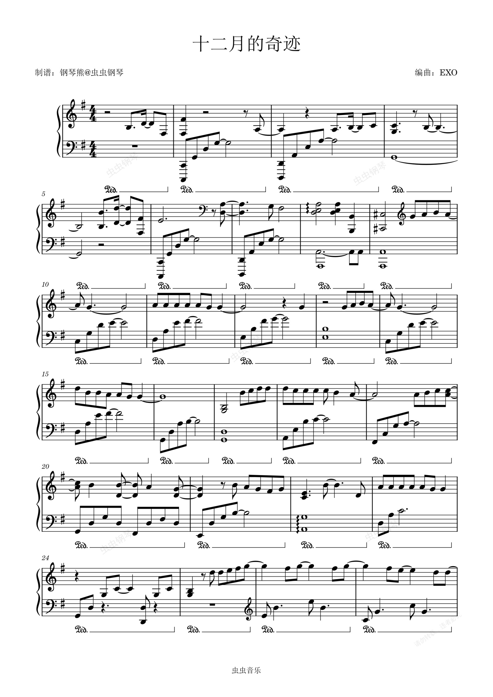钢琴谱:简单版《十二月的奇迹》极致还原版