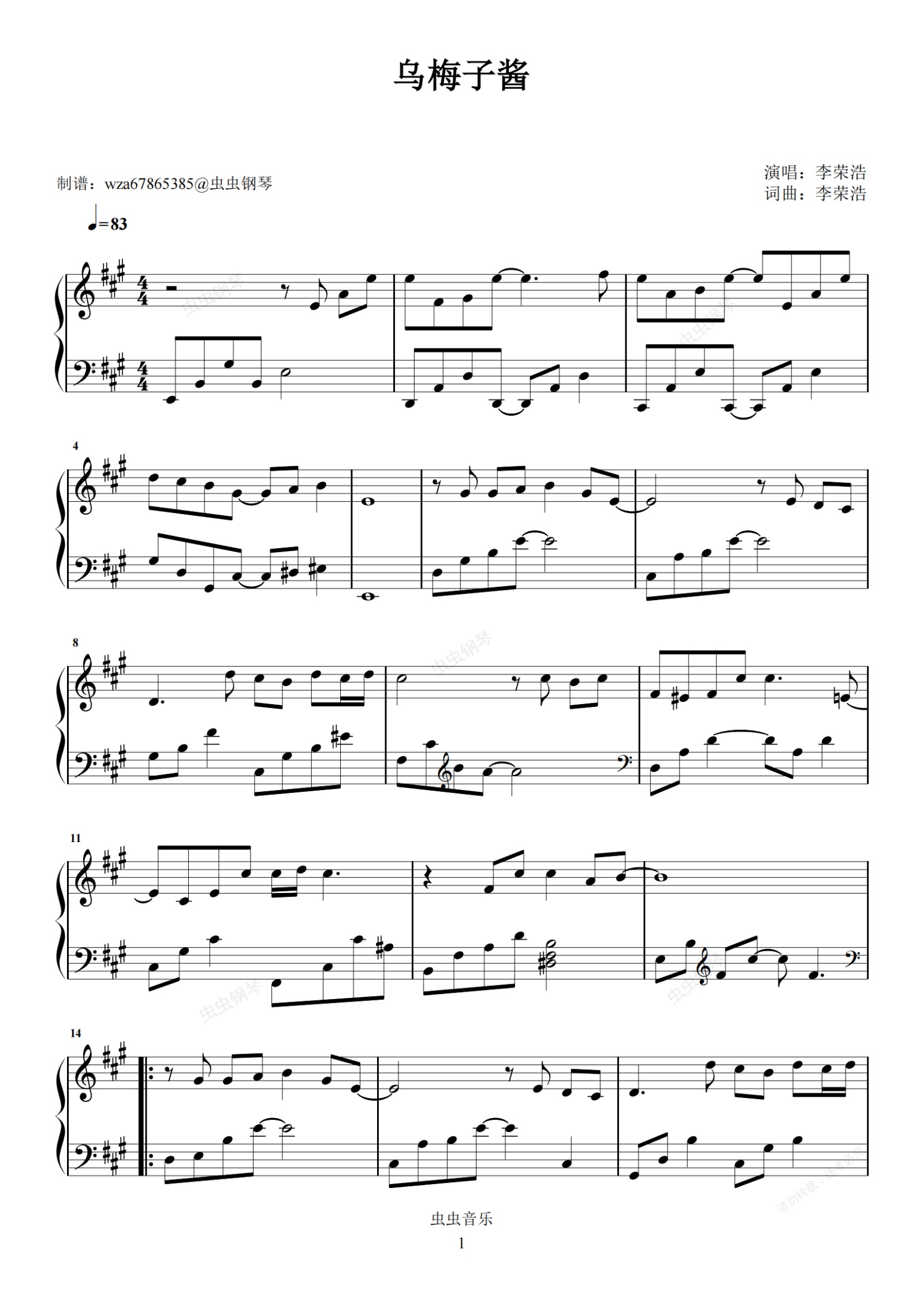 钢琴谱:乌梅子酱