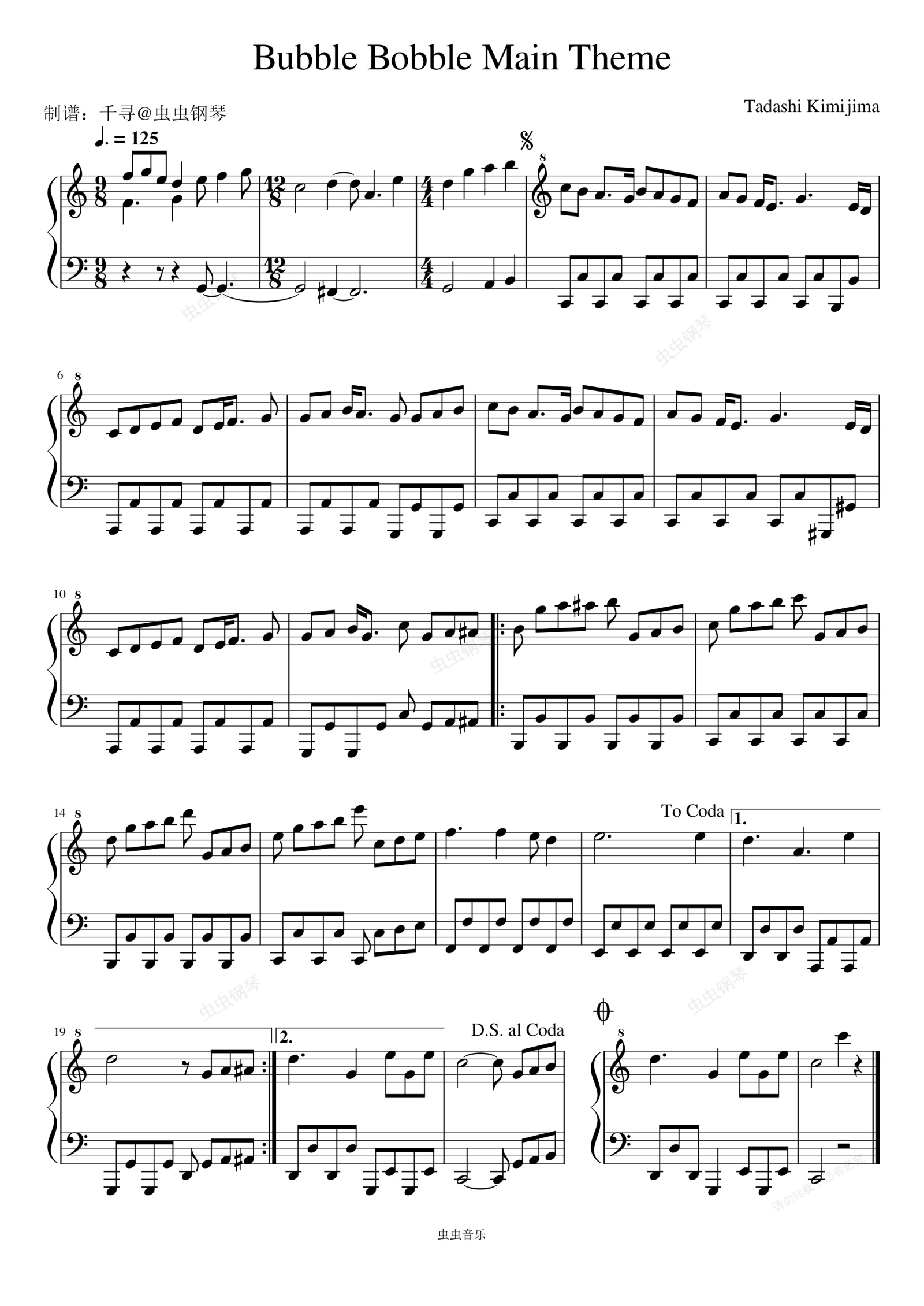 钢琴谱:Bubble Bobble (Main Theme)