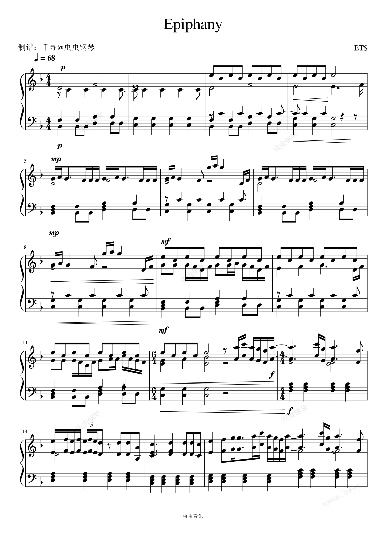 钢琴谱:Epiphany - BTS (防弹少年团)