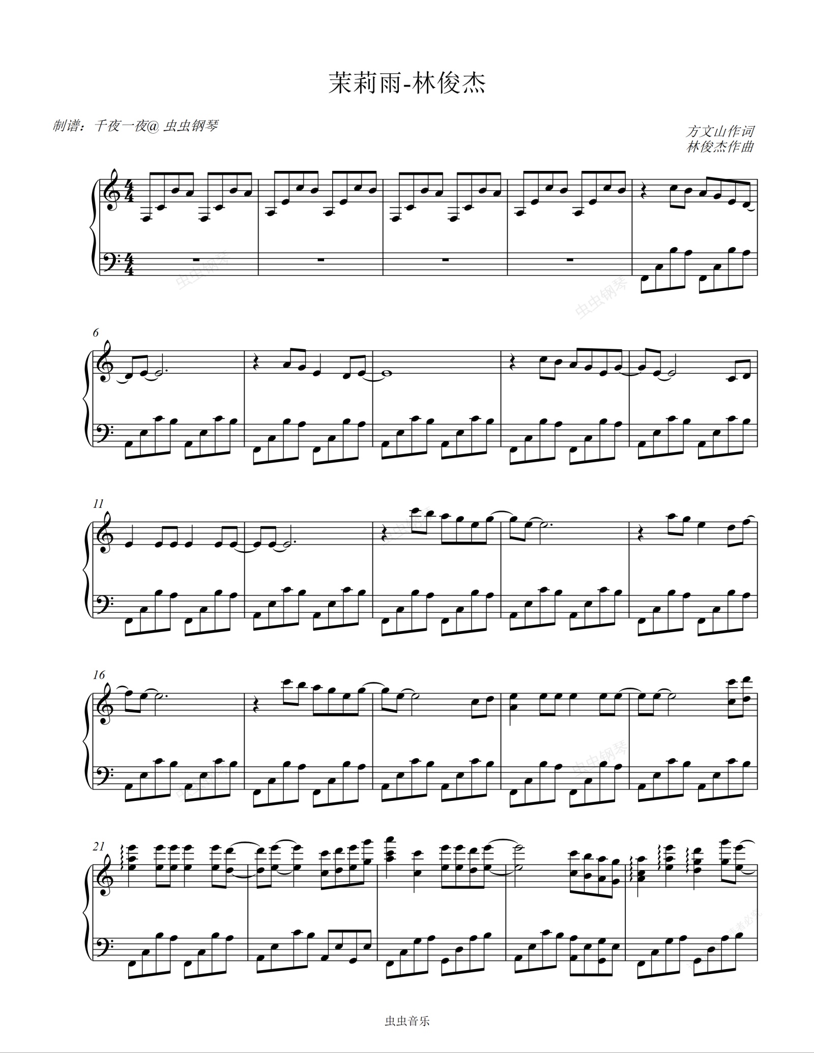钢琴谱:轻弹一首别离,放不下你钢琴弹唱/原唱/林俊杰 - 《茉莉雨》