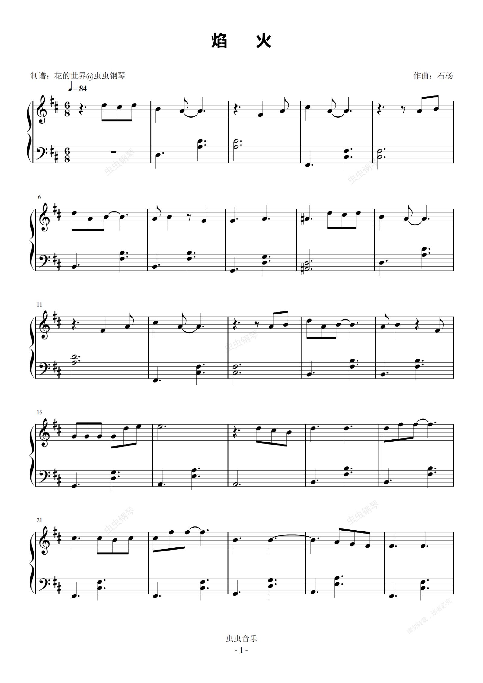 钢琴谱:焰火原调简易 周深 点燃我,温暖你