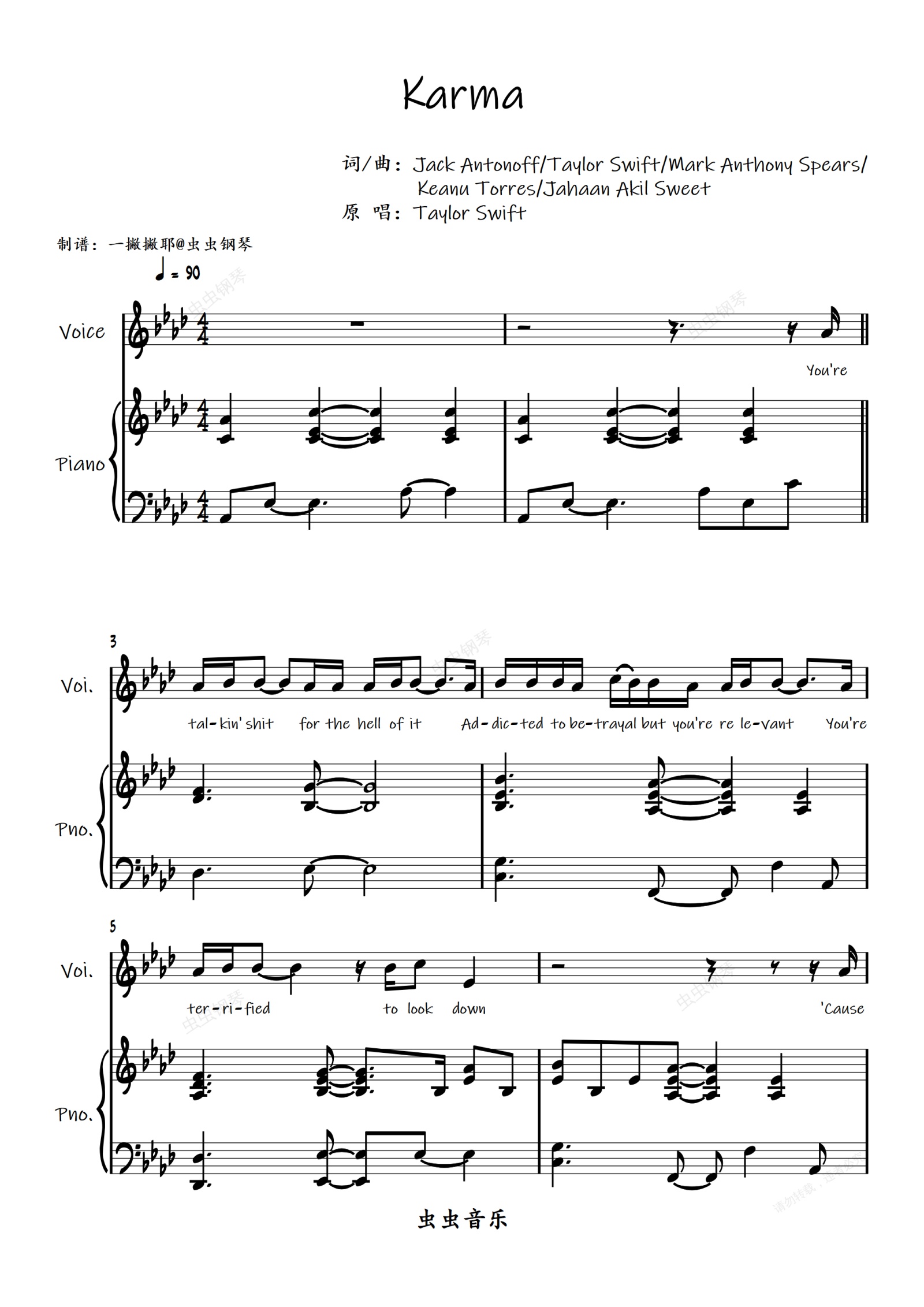钢琴谱:Karma【弹唱谱】Taylor Swift《Midnights》「一撇撇耶」