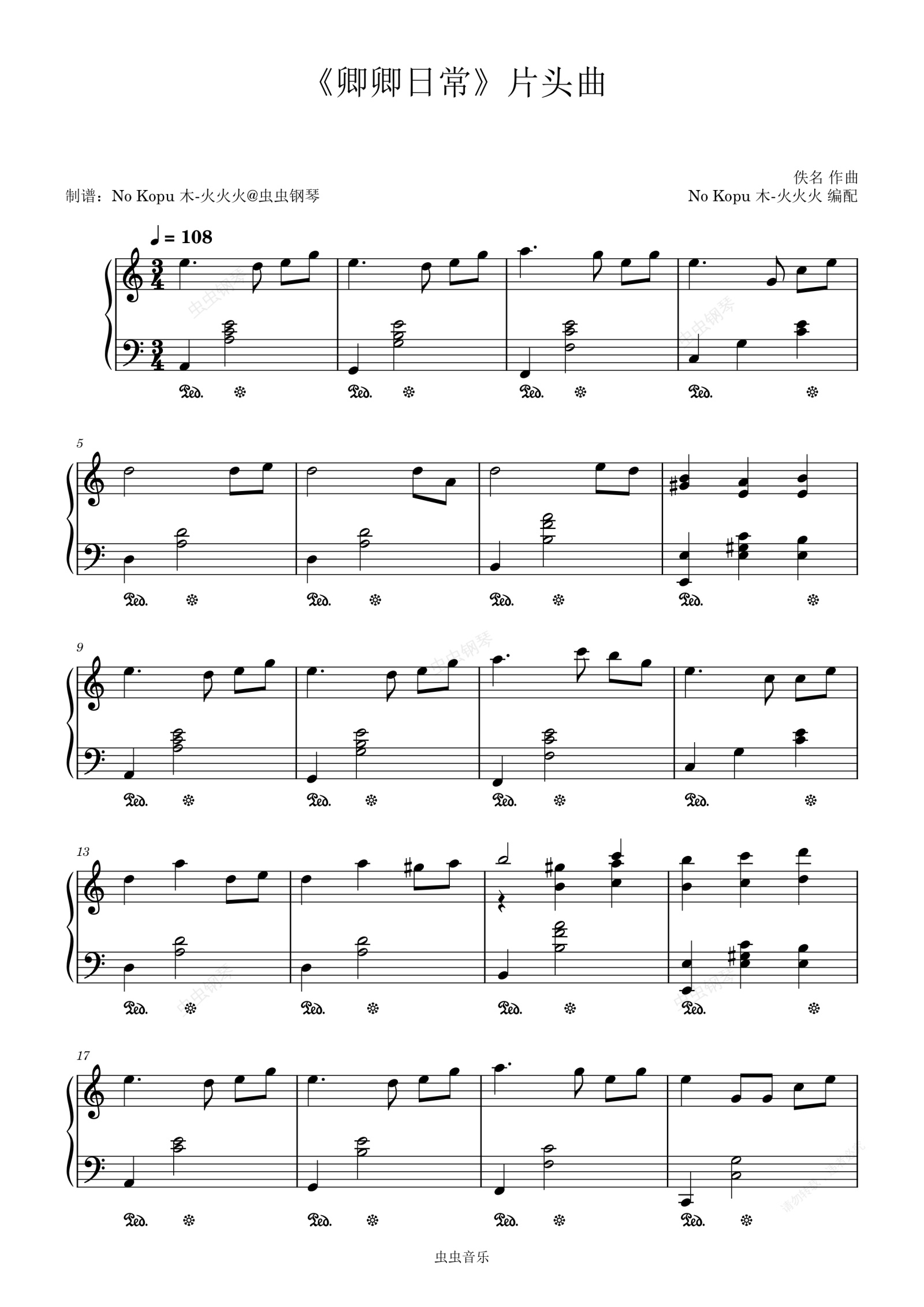 钢琴谱:精编扒谱《卿卿日常》片头纯音乐-C调