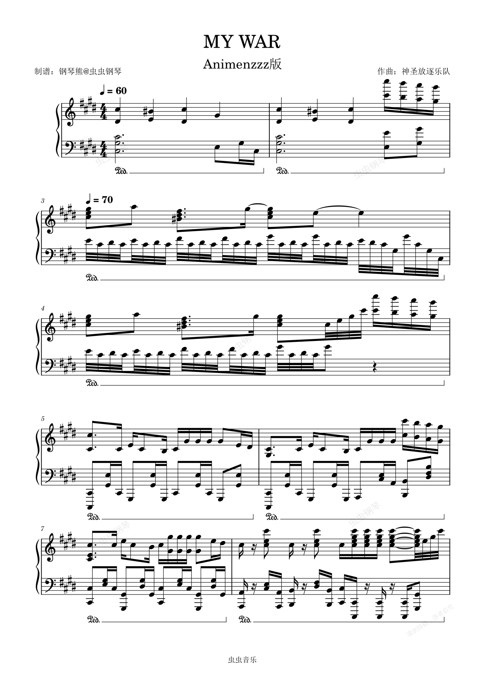 钢琴谱:Animenzzz版《MY WAR》高能!!!