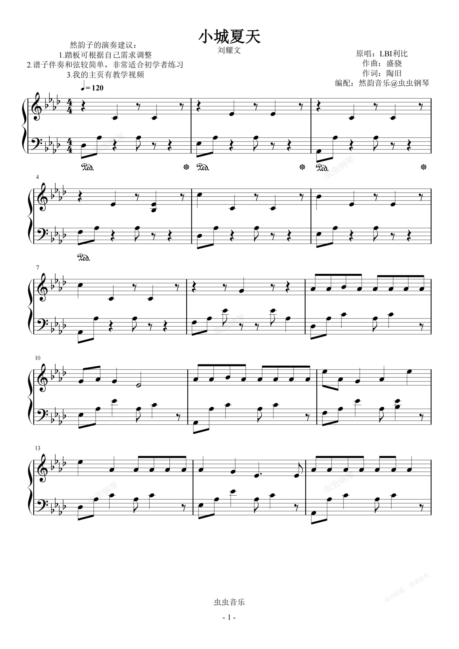 钢琴谱:【原调】小城夏天-刘耀文 钢琴唯美还原 TNT时代少年团3时有声 然韵音乐编配
