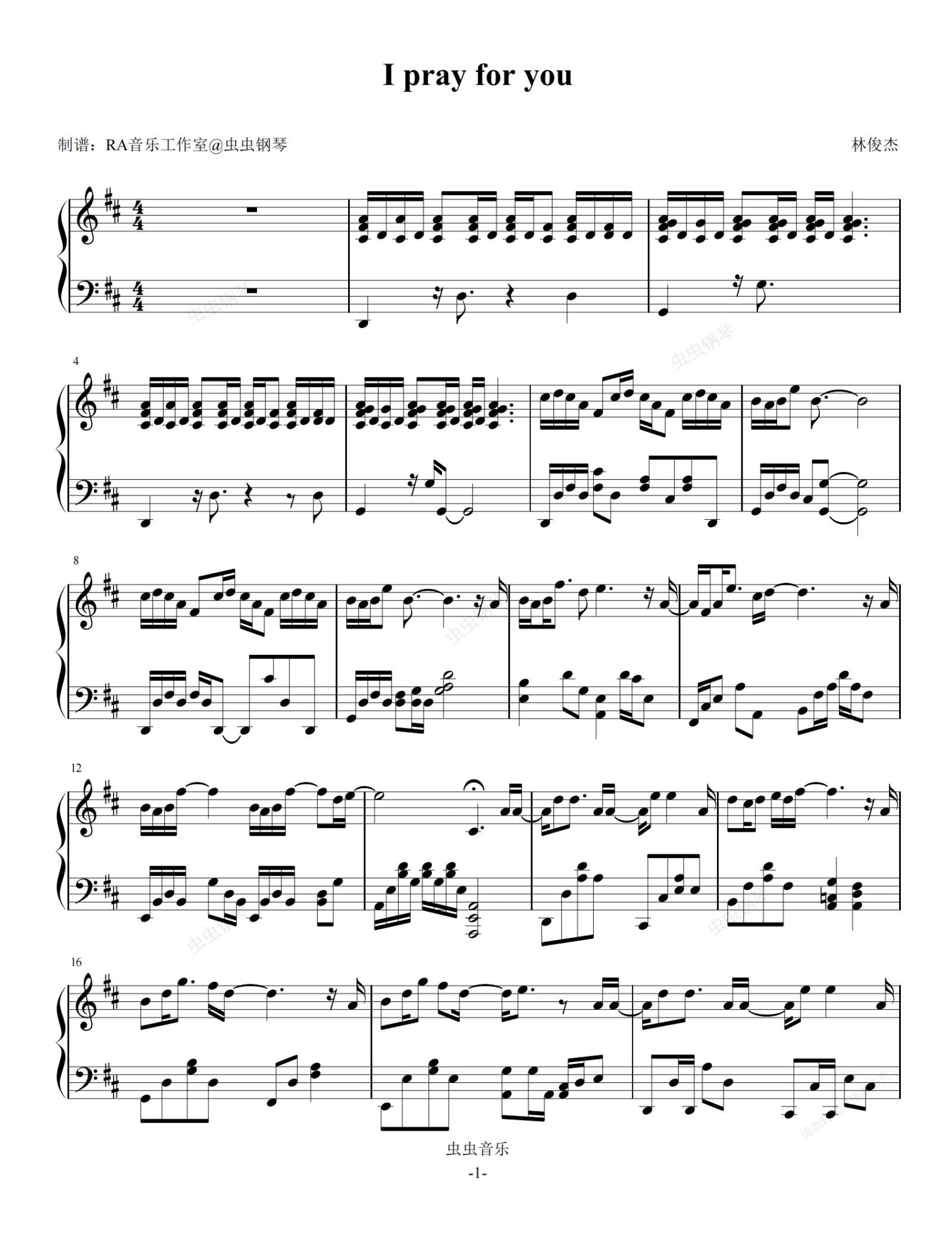 钢琴谱:《I PRAY FOR YOU》-林俊杰 钢琴演奏谱