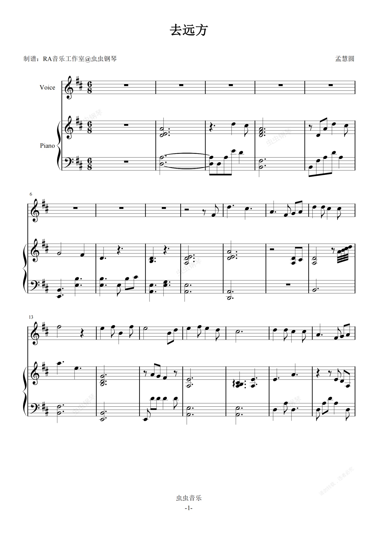 钢琴谱:<去远方>-孟慧圆-钢琴伴奏谱 青春的诗